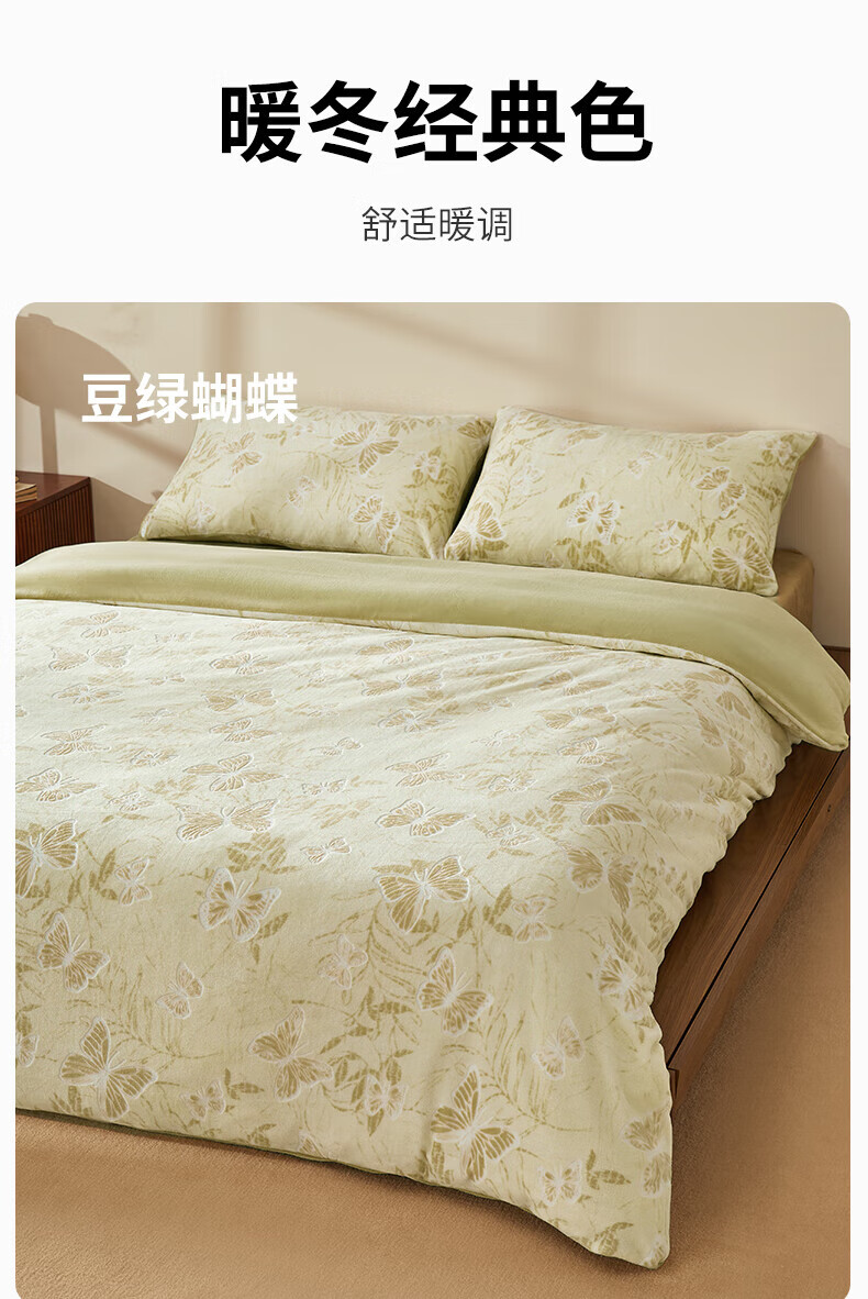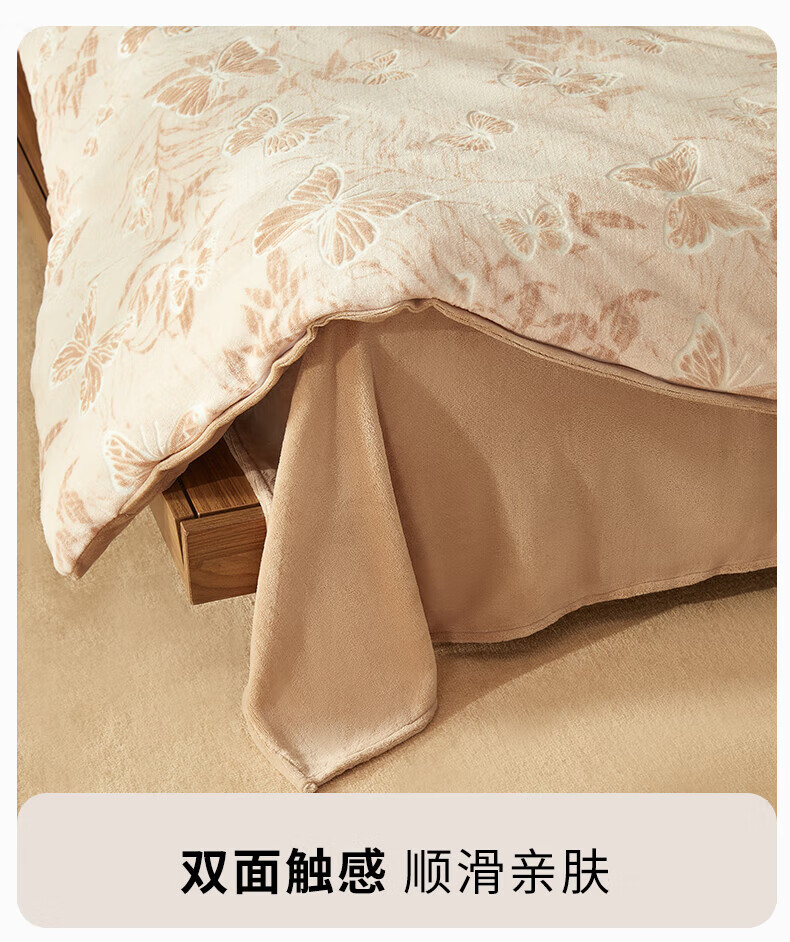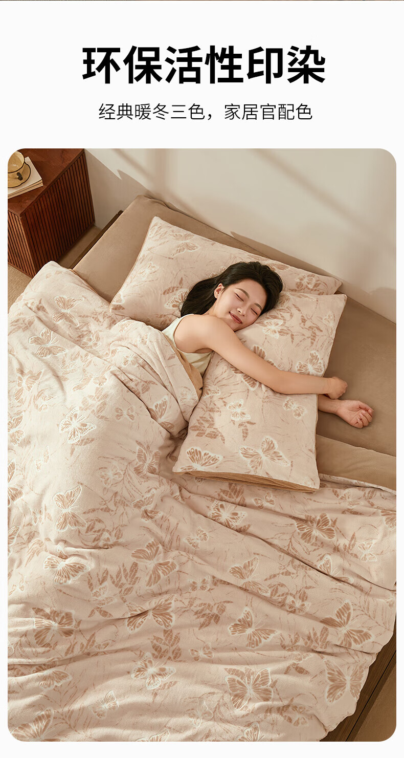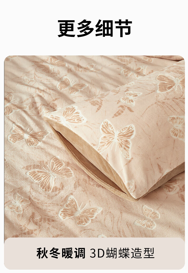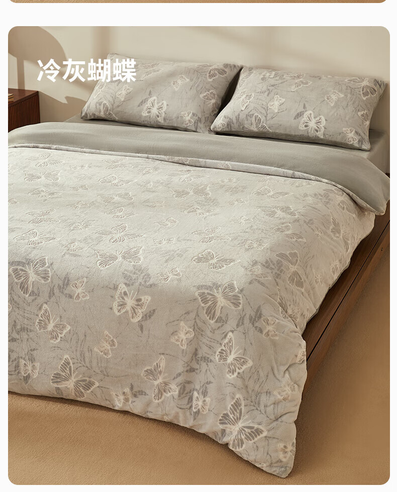 一默四件套秋冬被套床单枕套加厚保暖单双人套件蝴蝶烂花牛奶绒多件套 冷灰蝴蝶丨母婴A类 床单款 (被套200*230cm)