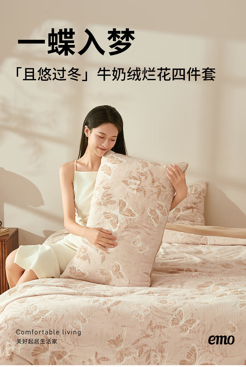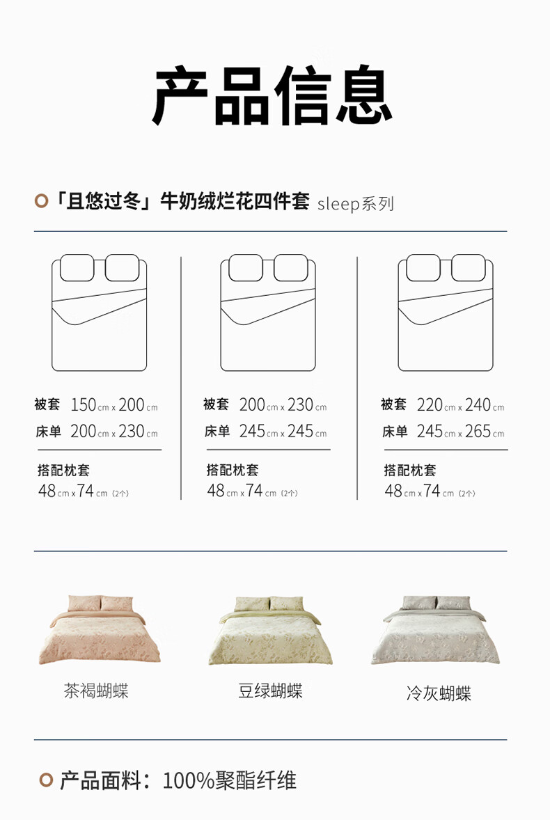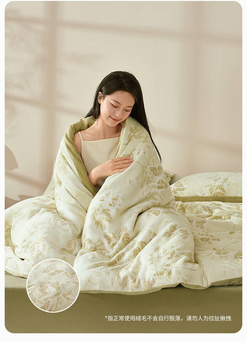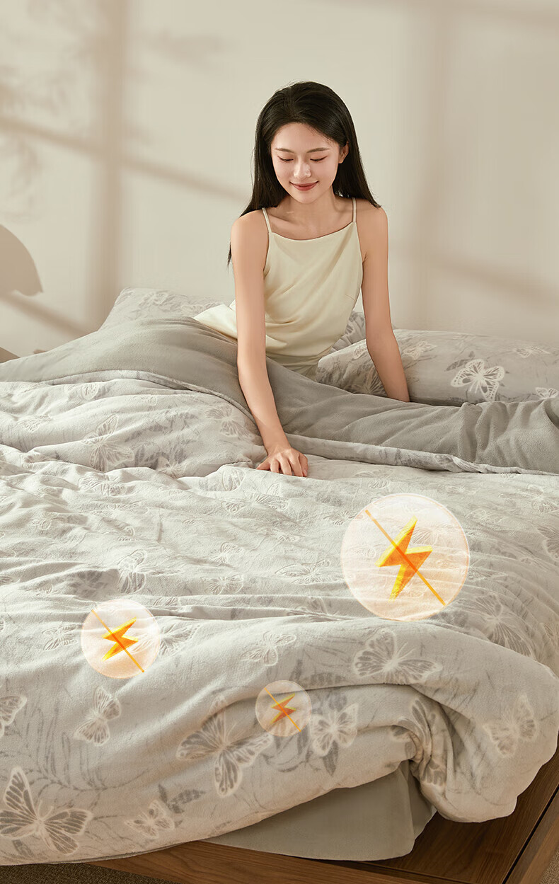 一默四件套秋冬被套床单枕套加厚保暖单双人套件蝴蝶烂花牛奶绒多件套 冷灰蝴蝶丨母婴A类 床单款 (被套200*230cm)