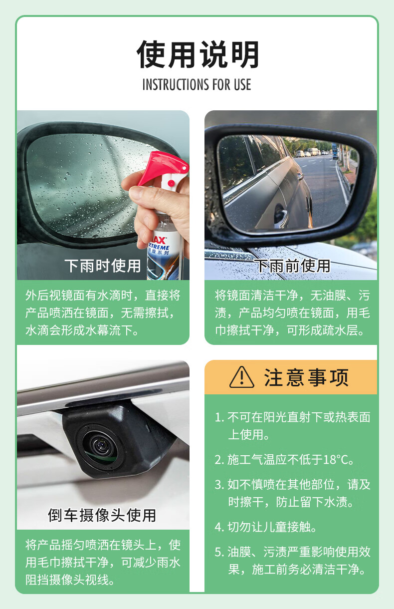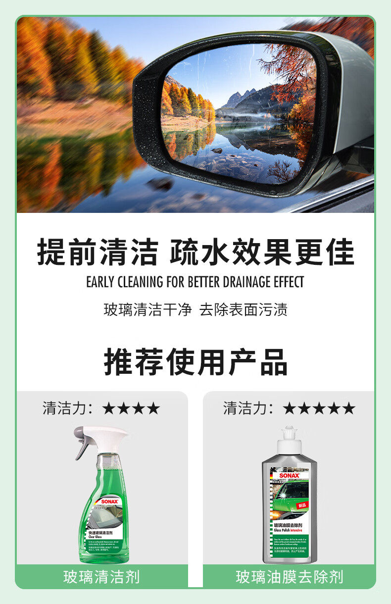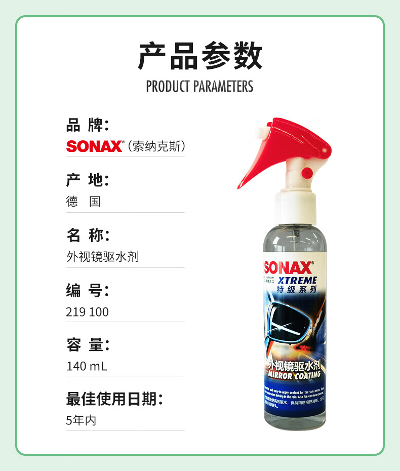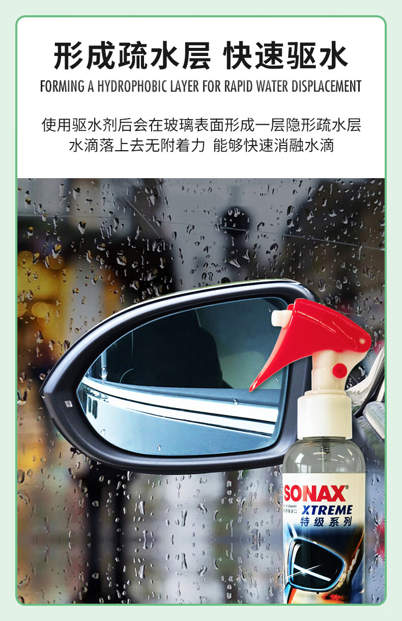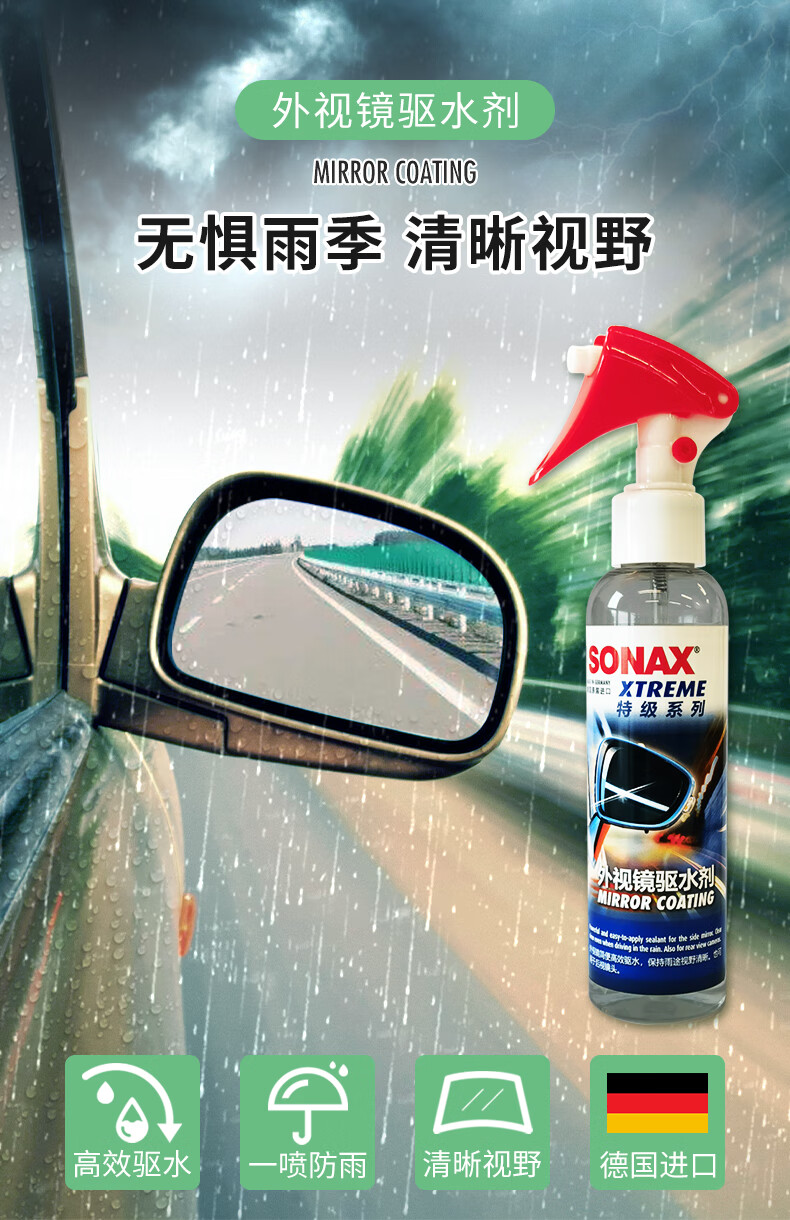 索纳克斯(SONAX)德国进口汽车后视镜防雨剂雨天外视镜玻璃驱水剂喷雾玻璃雨敌 【即喷型】后视镜防雨剂 140ml