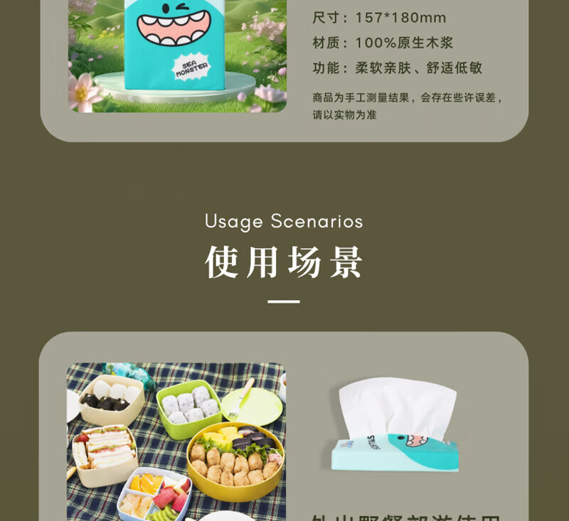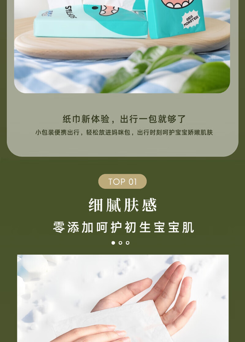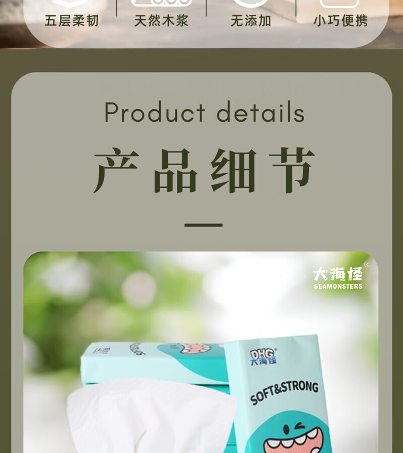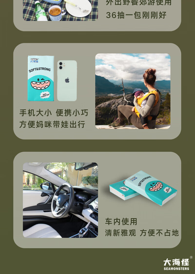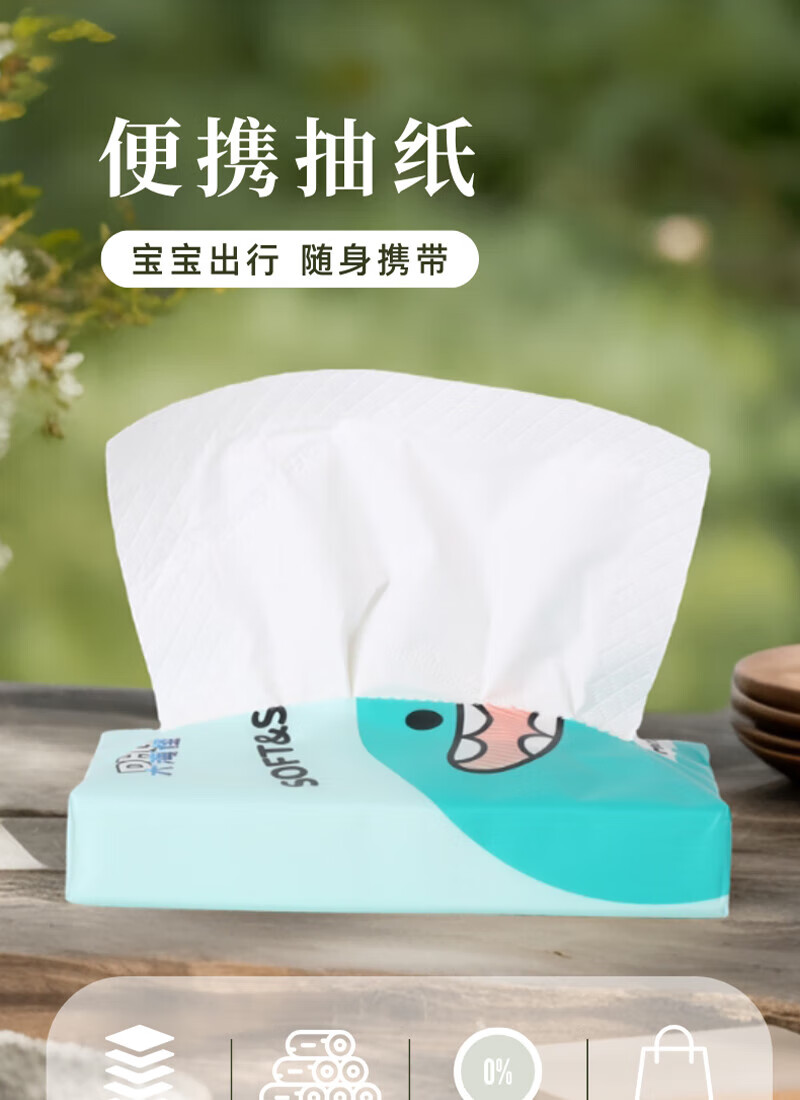大海怪便携装8包*36抽干湿两用餐巾纸抽取式面巾纸5层加厚天然无香 便携抽纸5层可湿水 5层 36抽*1包 便携抽8连包*1提