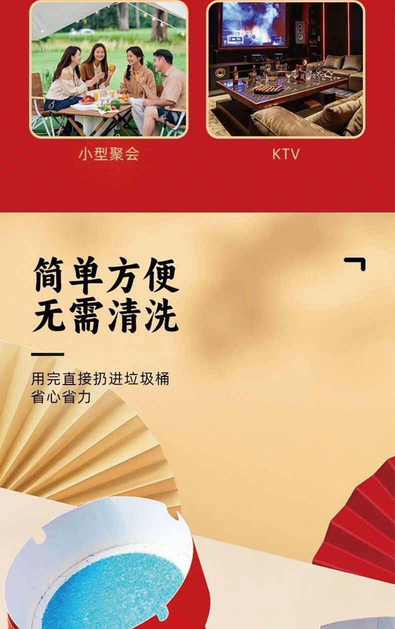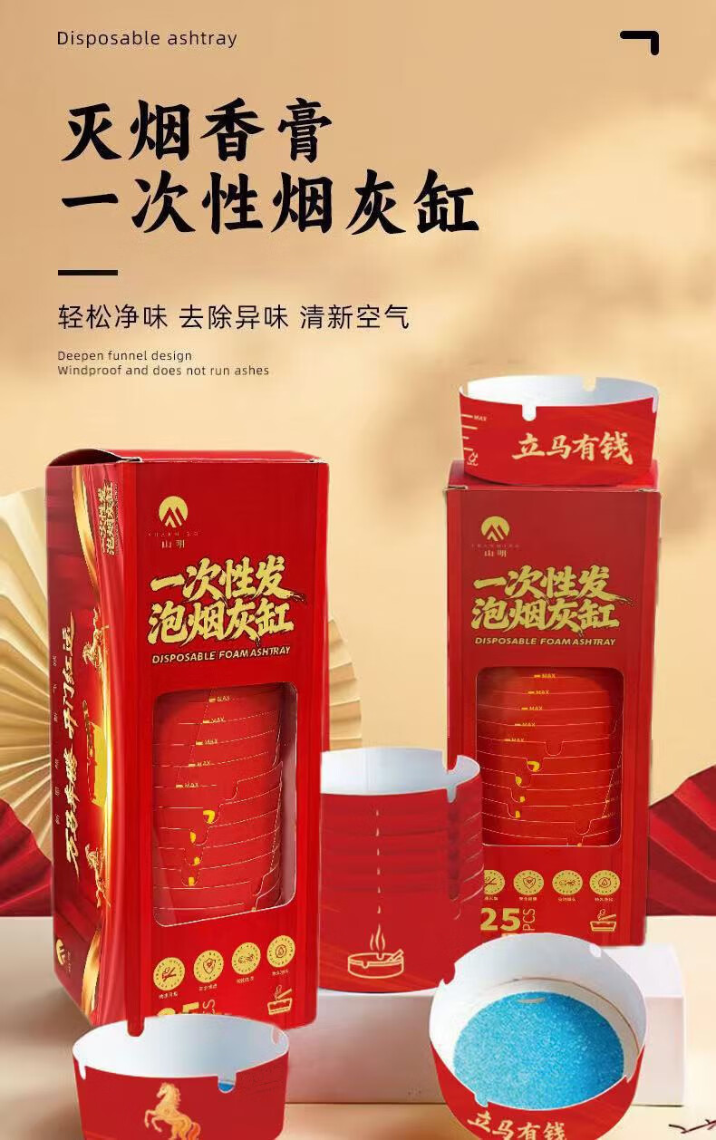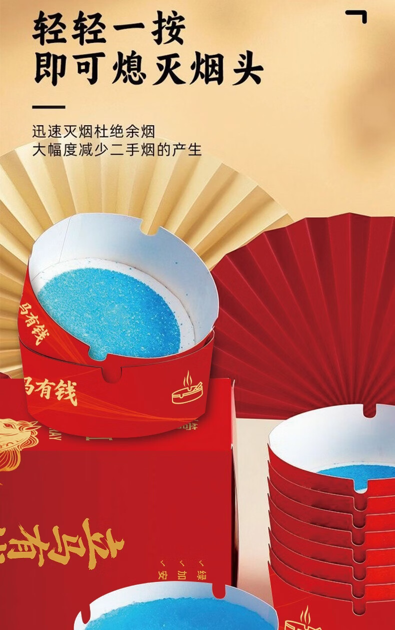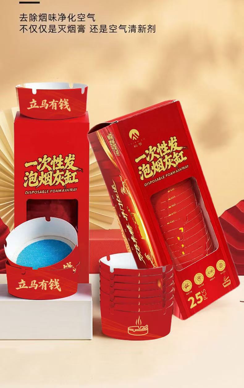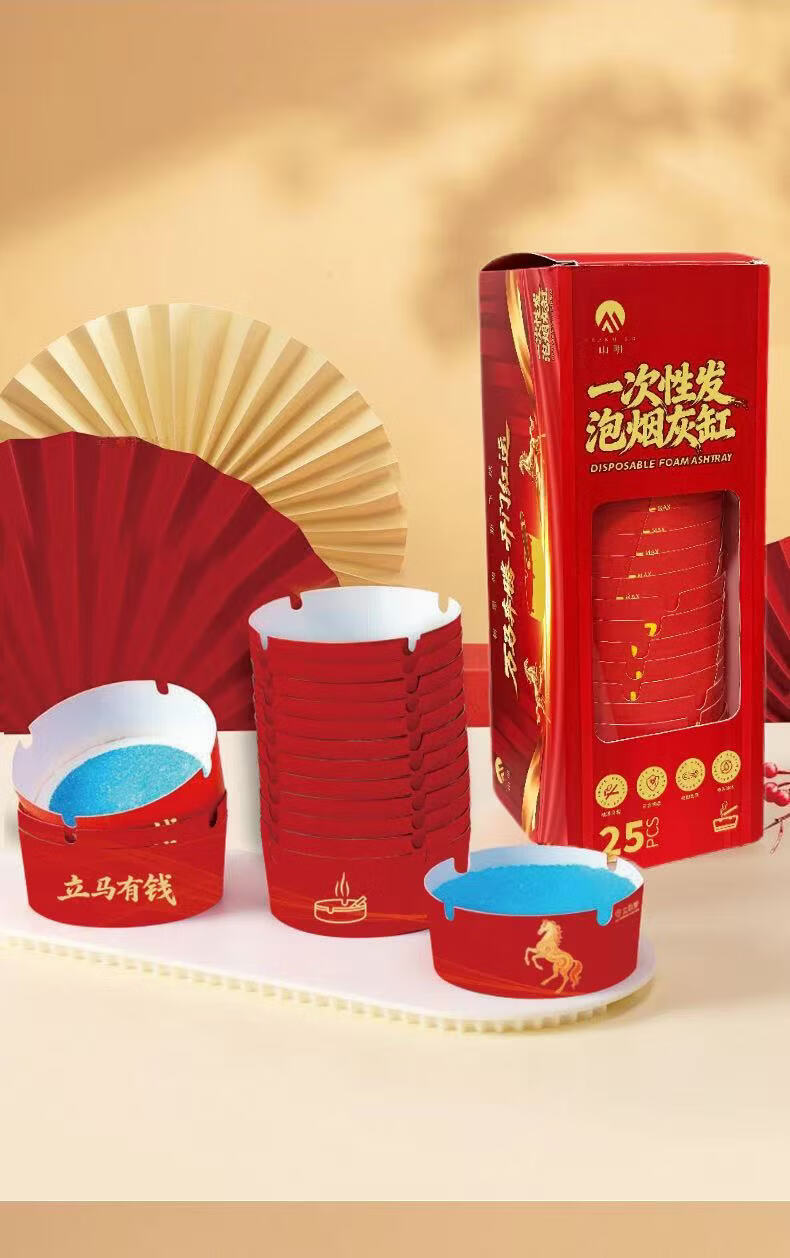 洋臣新年喜庆款 一次性烟灰缸便携灭烟沙防烟灰 加水一次性发泡烟灰缸 一次性发泡烟灰缸50只