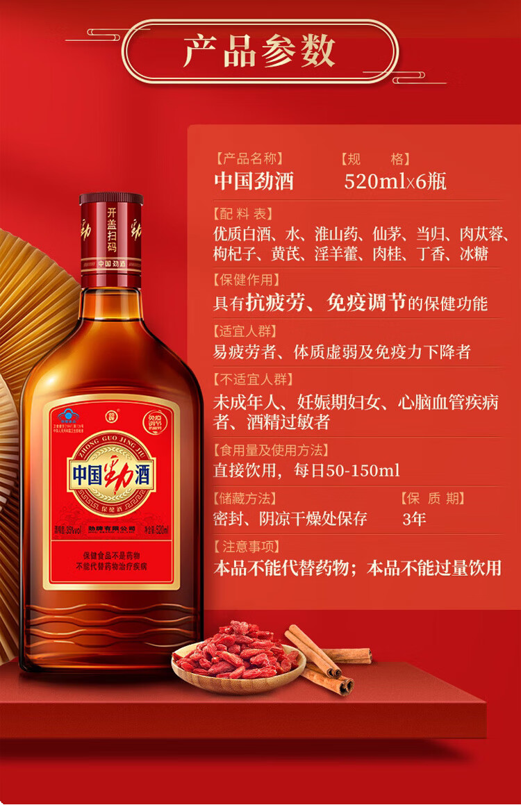 劲牌中国劲酒 35度保健酒养生酒 35度 500mL 2瓶 【礼盒】