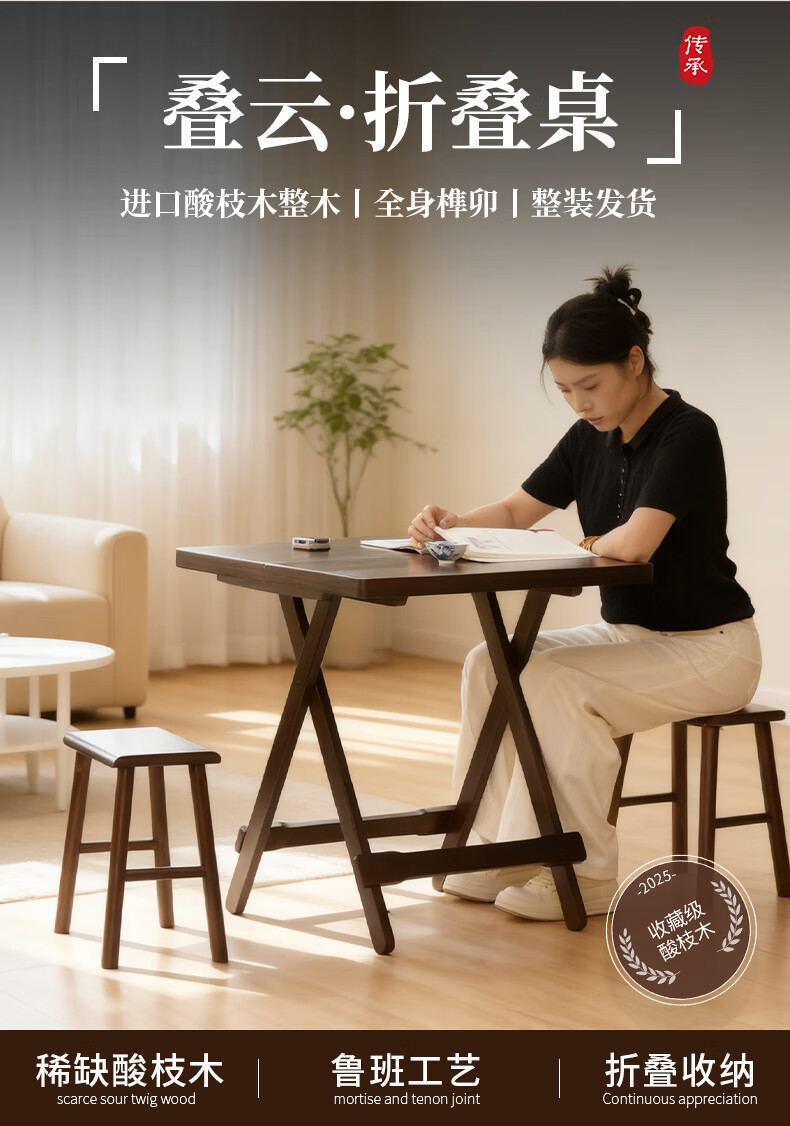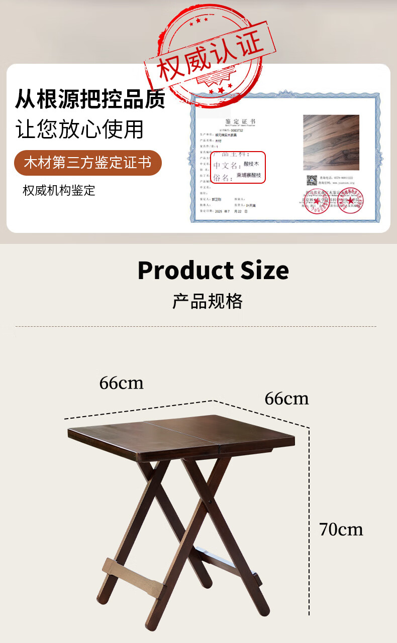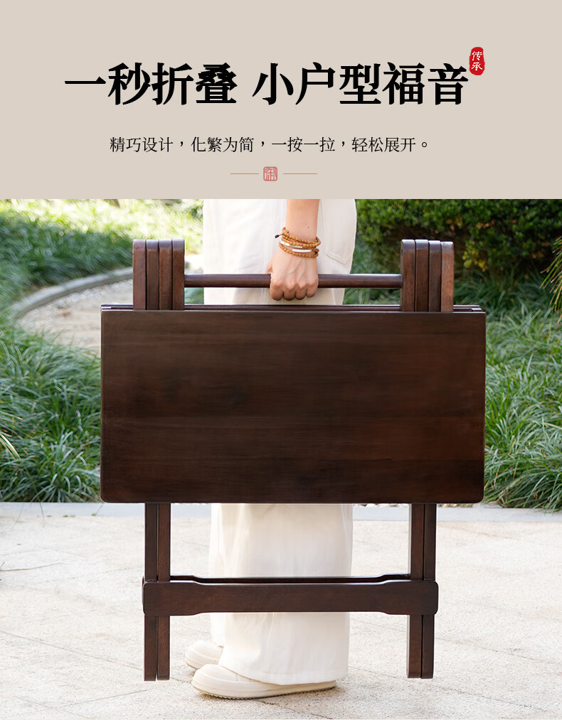 御云锦实木折叠桌家用棋牌桌四方桌户外摆摊露营折叠桌实木餐桌吃饭桌子 【套组】一桌两凳