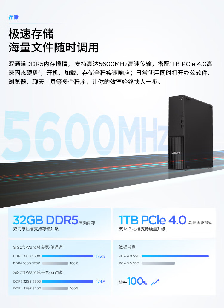 联想扬天M4000q 商用办公台式电脑台式机主机(酷睿Ultra5 225 32G DDR5 1TB)单主机 国家补贴