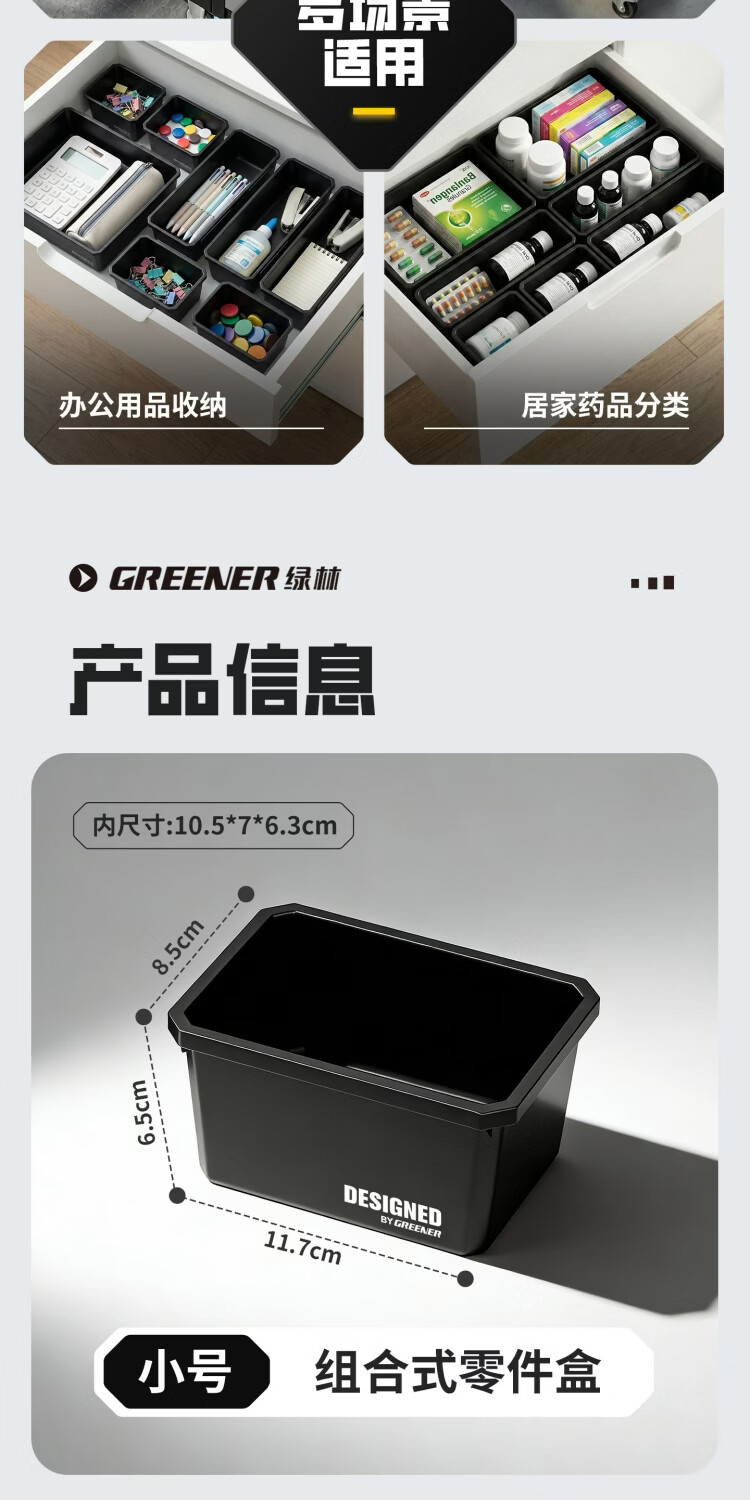 绿林零件收纳盒五金螺丝钻头配件分类收纳组合加厚塑料多格储物盒 小号【1个装】分隔存储