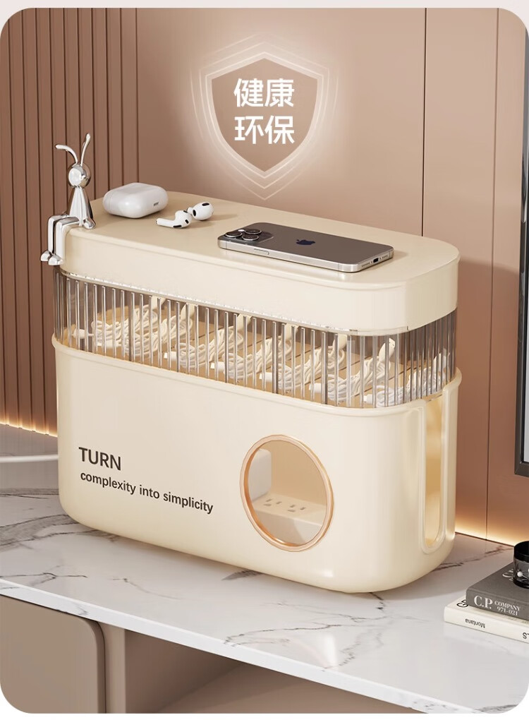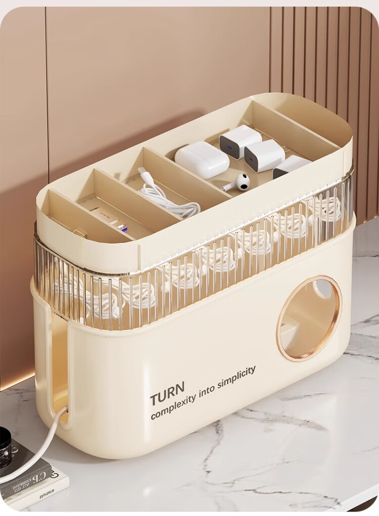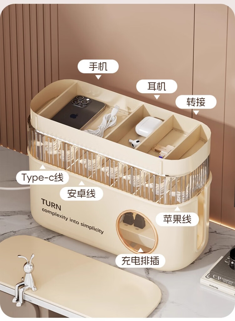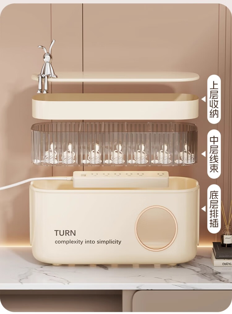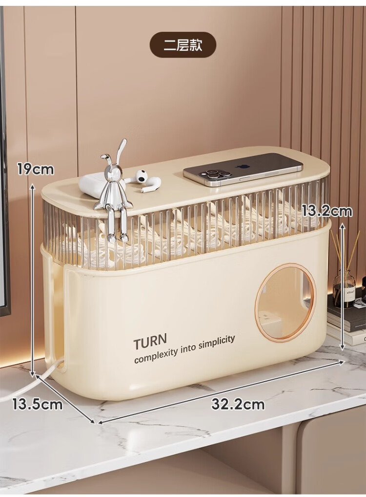 尔思家数据线收纳盒电源充电线收纳桌面绕线器理线整理盒机顶盒置物架 二层【排插/数据线收纳盒】