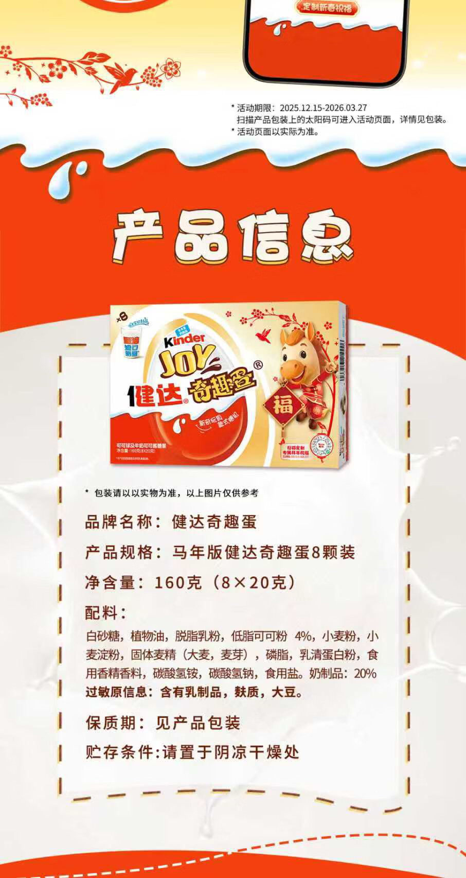 健达 奇趣蛋8颗160g 新年款马年限定款 休闲零食 含玩具