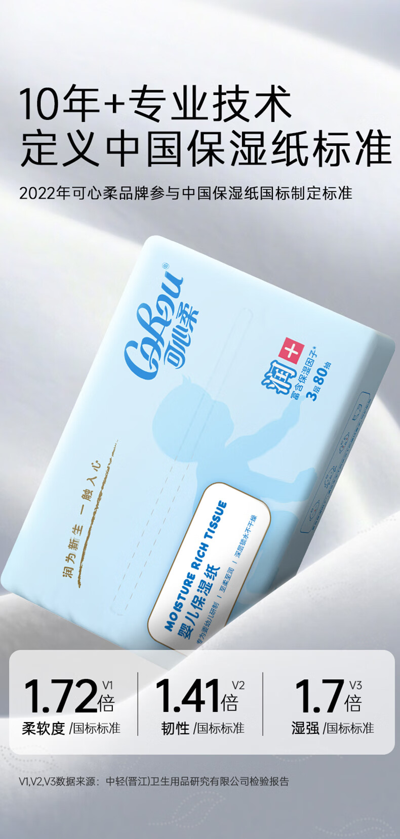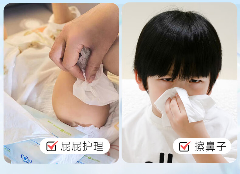 可心柔(COROU)V9婴儿纸巾3层80抽乳霜纸云柔巾便携小包抽纸 【便携出行】 3层 80抽*4包