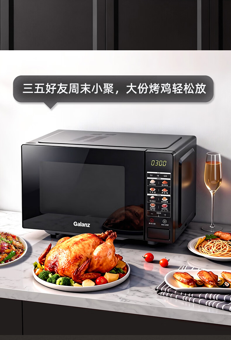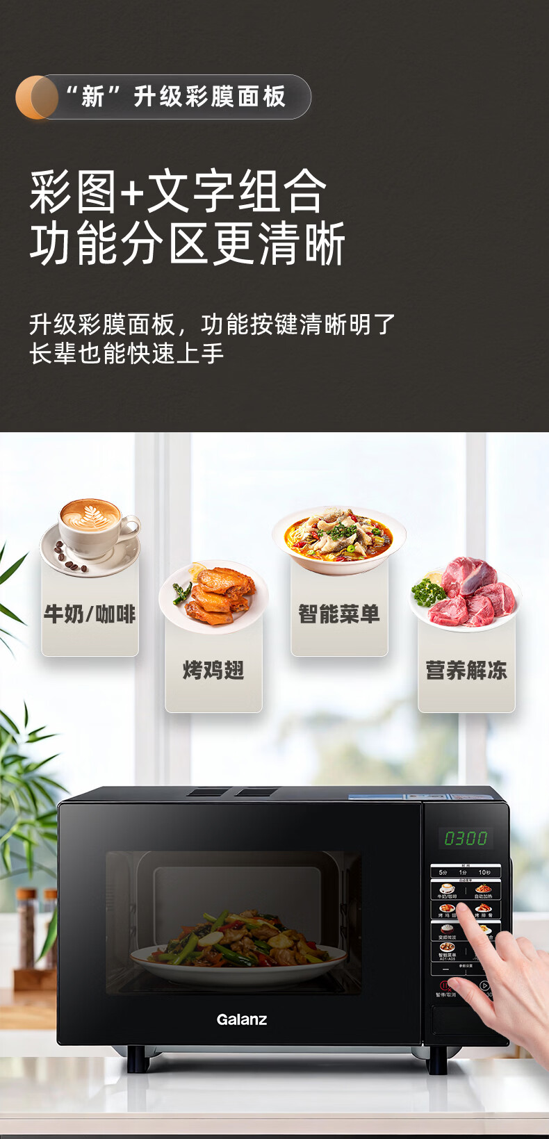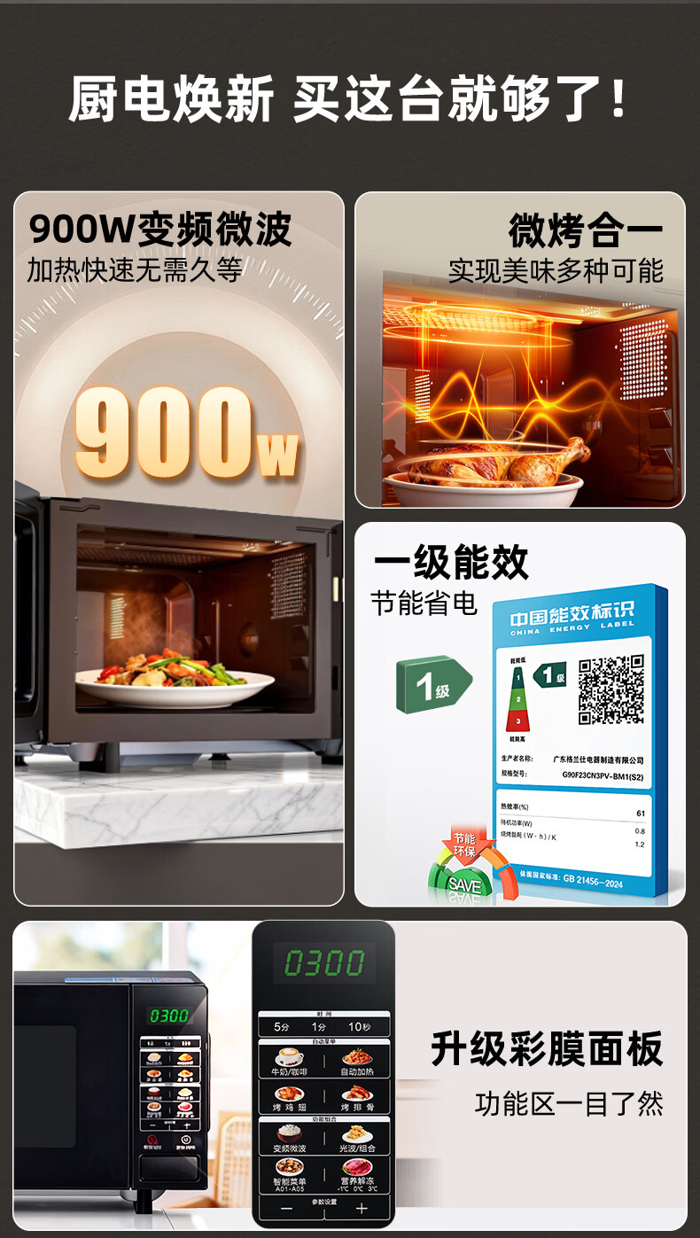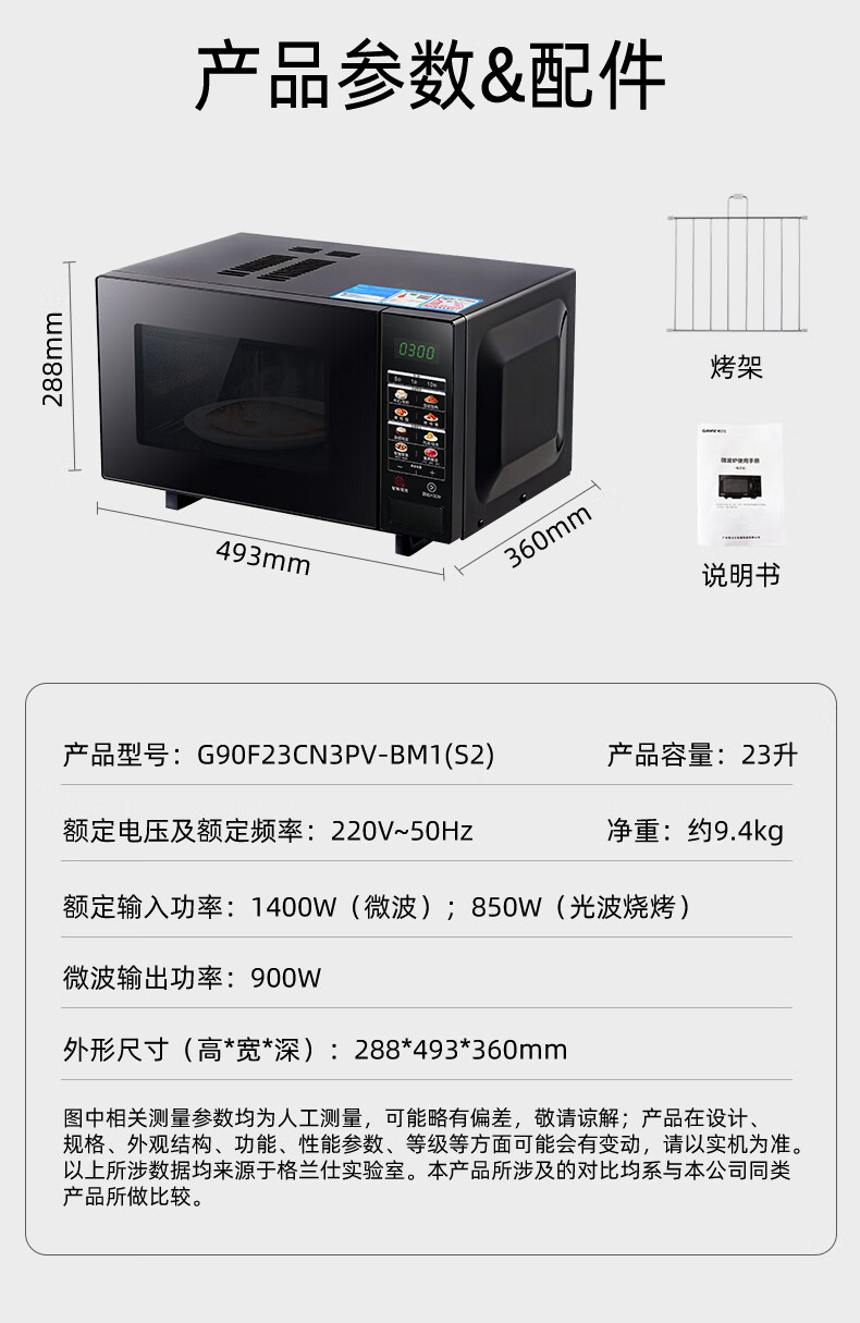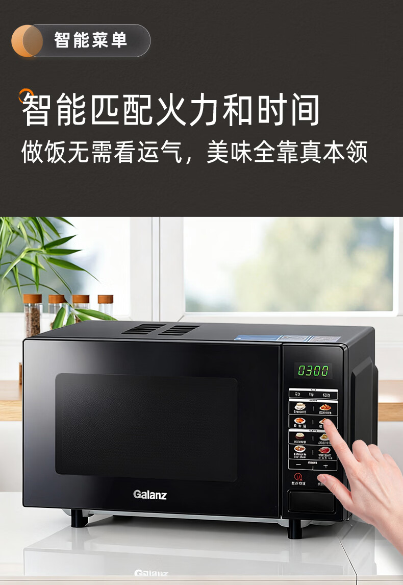格兰仕(Galanz)变频微波炉烤箱一体机光波炉900瓦大功率速热家用23L大容量平板易清洁省电一级能效智能菜单烧烤 2026新升级彩膜BM1(S2)