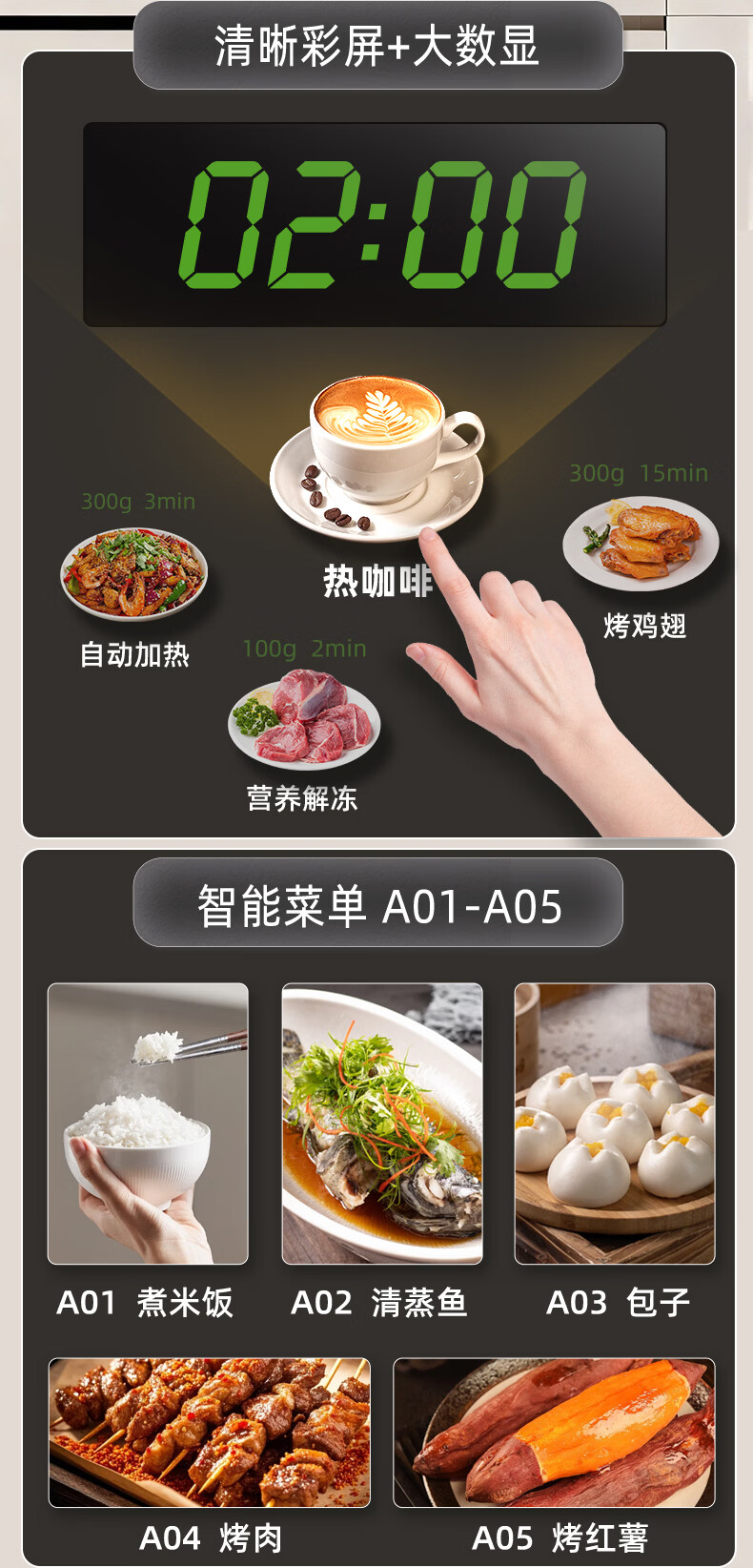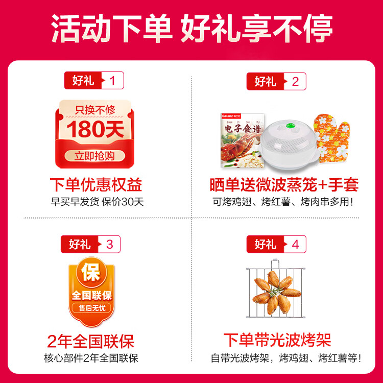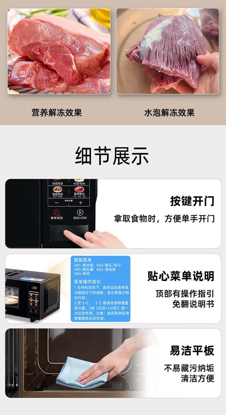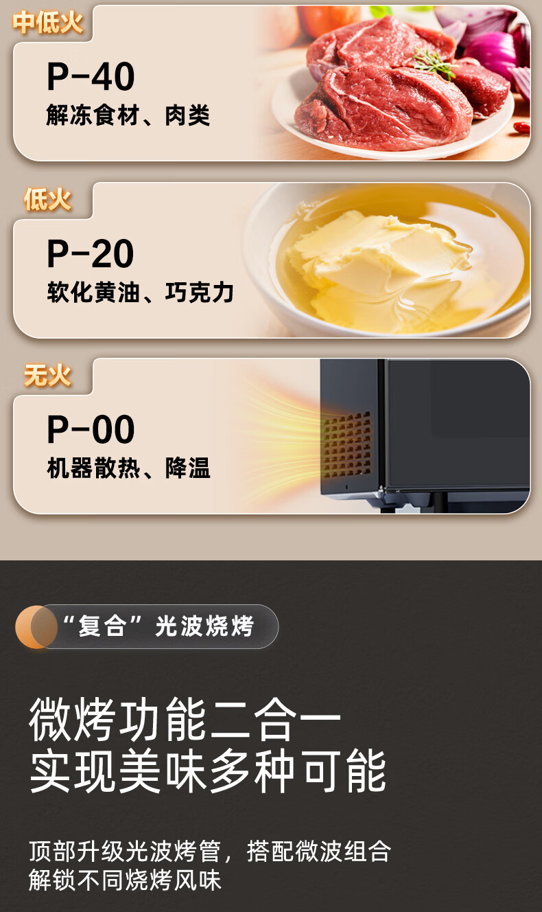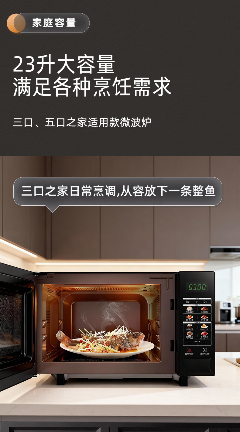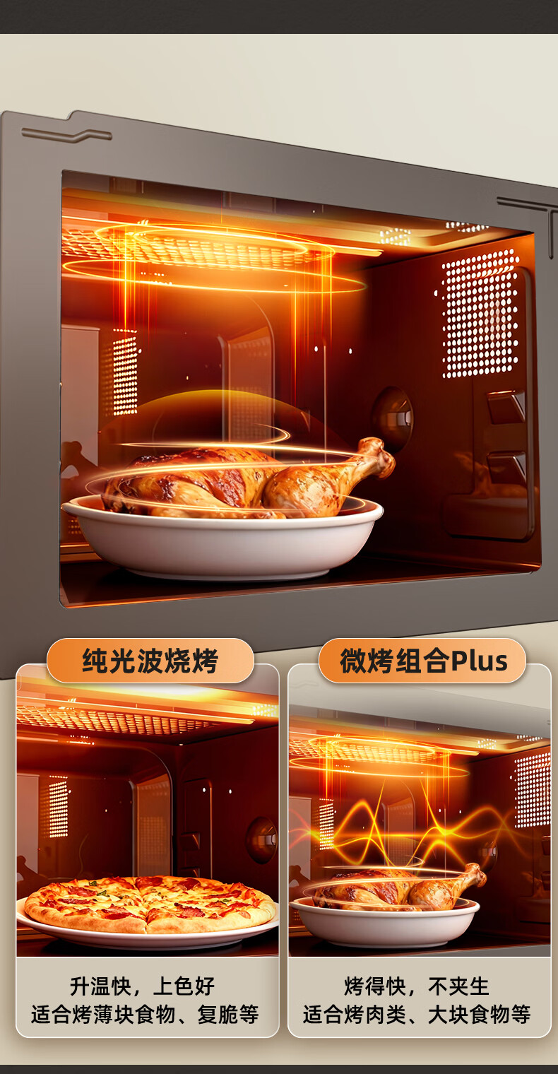 格兰仕(Galanz)变频微波炉烤箱一体机光波炉900瓦大功率速热家用23L大容量平板易清洁省电一级能效智能菜单烧烤 2026新升级彩膜BM1(S2)