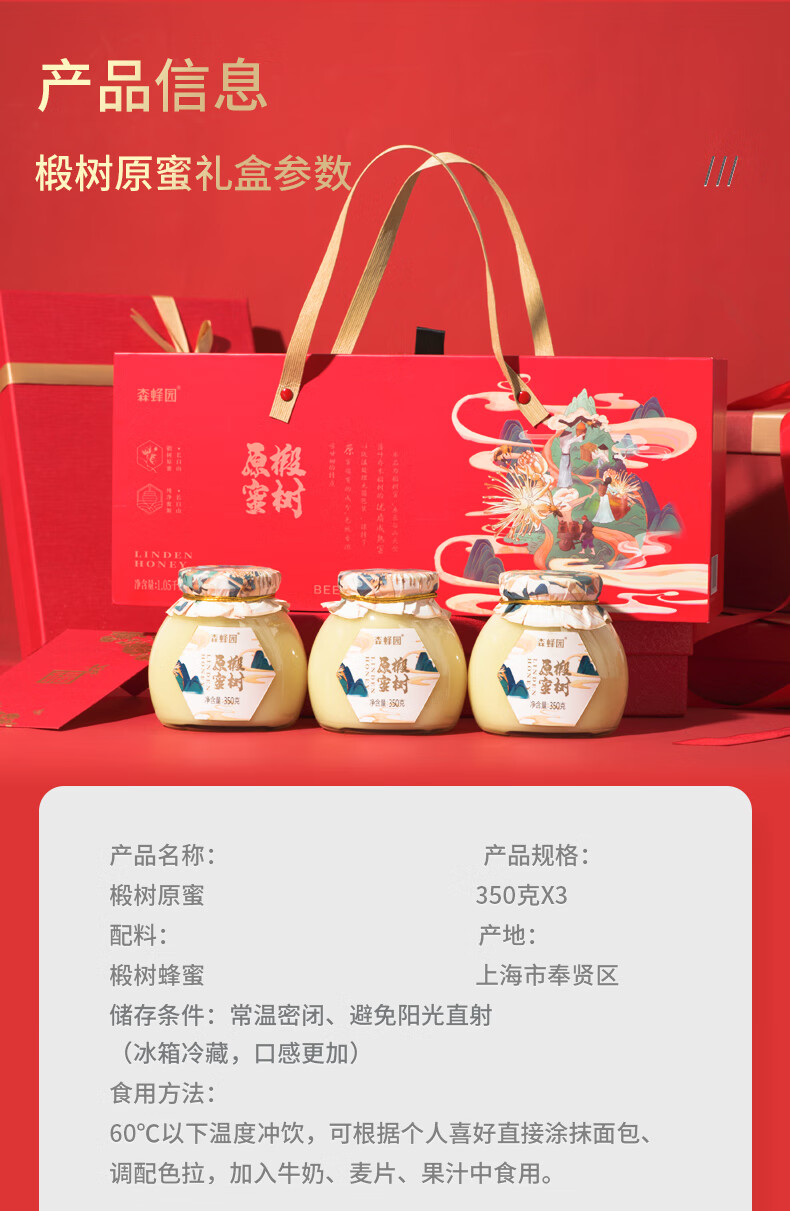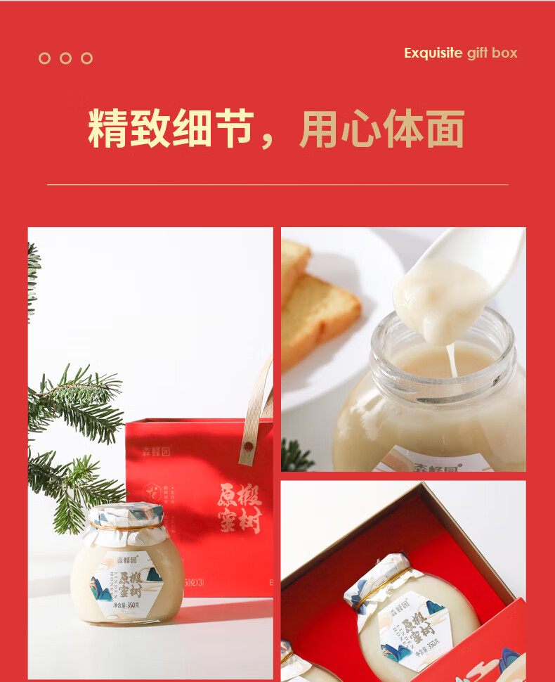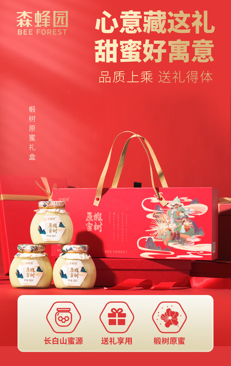 森蜂园长白山椴树雪蜜350g*3瓶年货礼盒过年礼盒送礼送长辈新年礼物团购