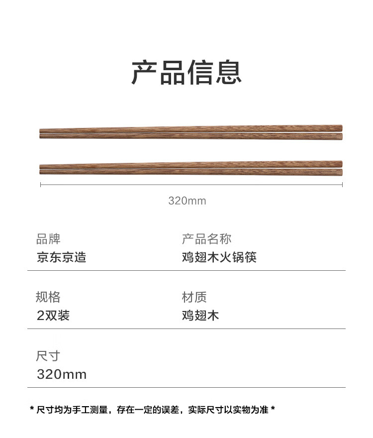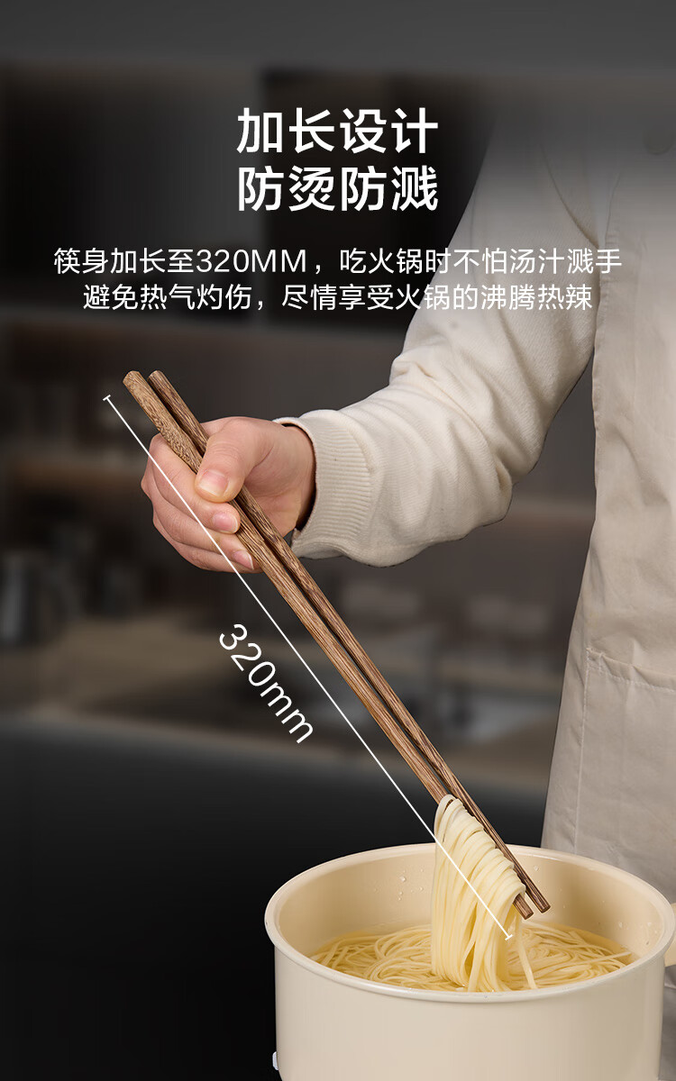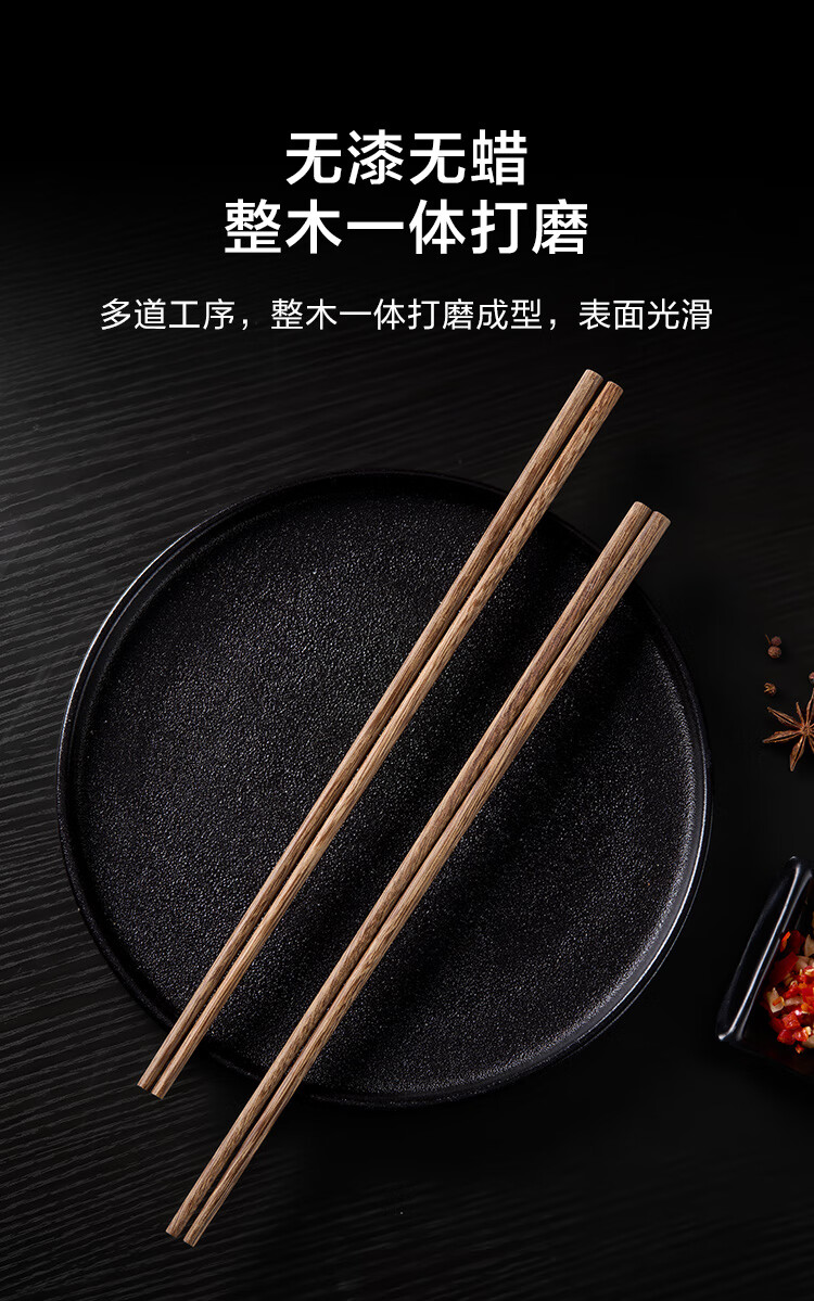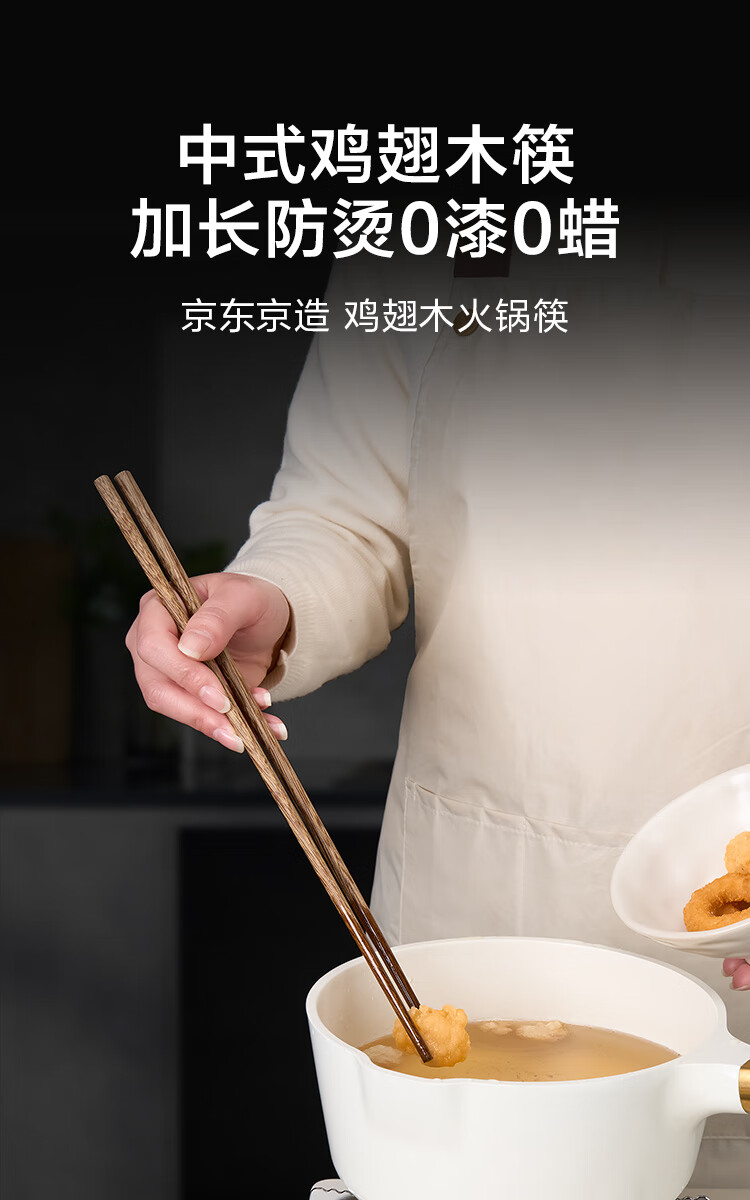 京东京造 筷子 家用食品接触级餐具无漆无蜡鸡翅木【加长火锅筷】32cm*2双