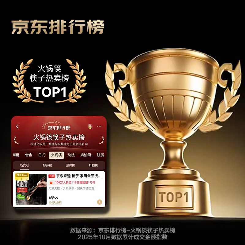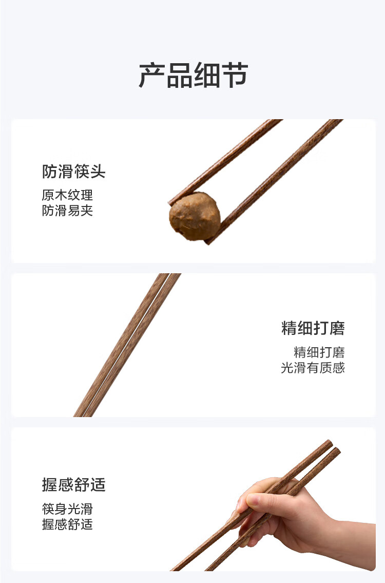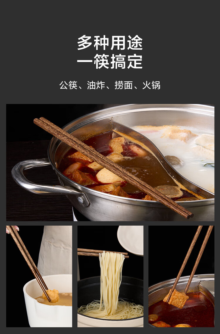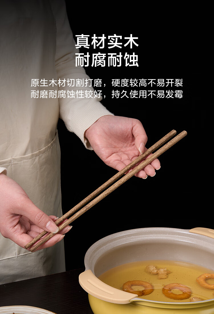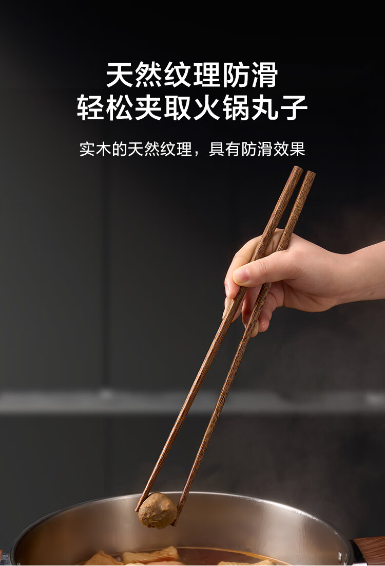 京东京造 筷子 家用食品接触级餐具无漆无蜡鸡翅木【加长火锅筷】32cm*2双