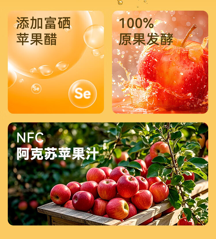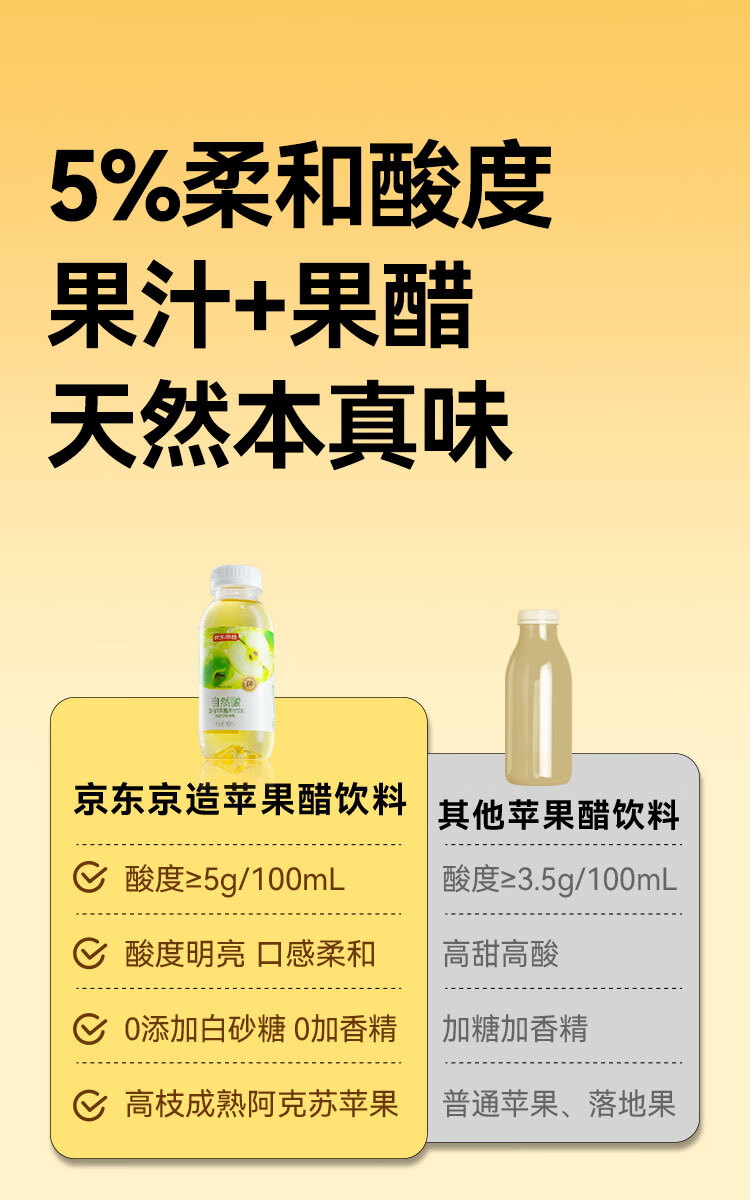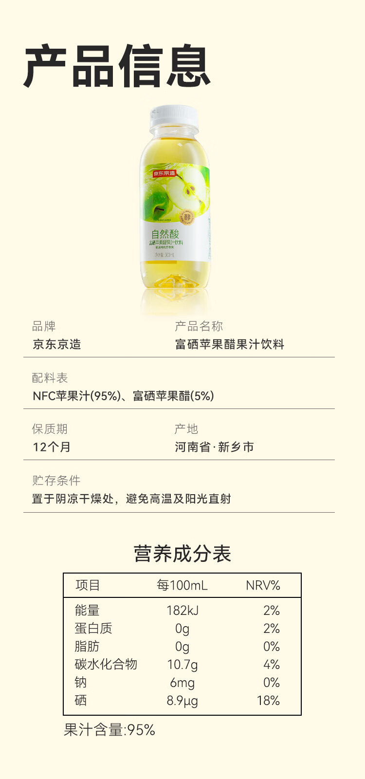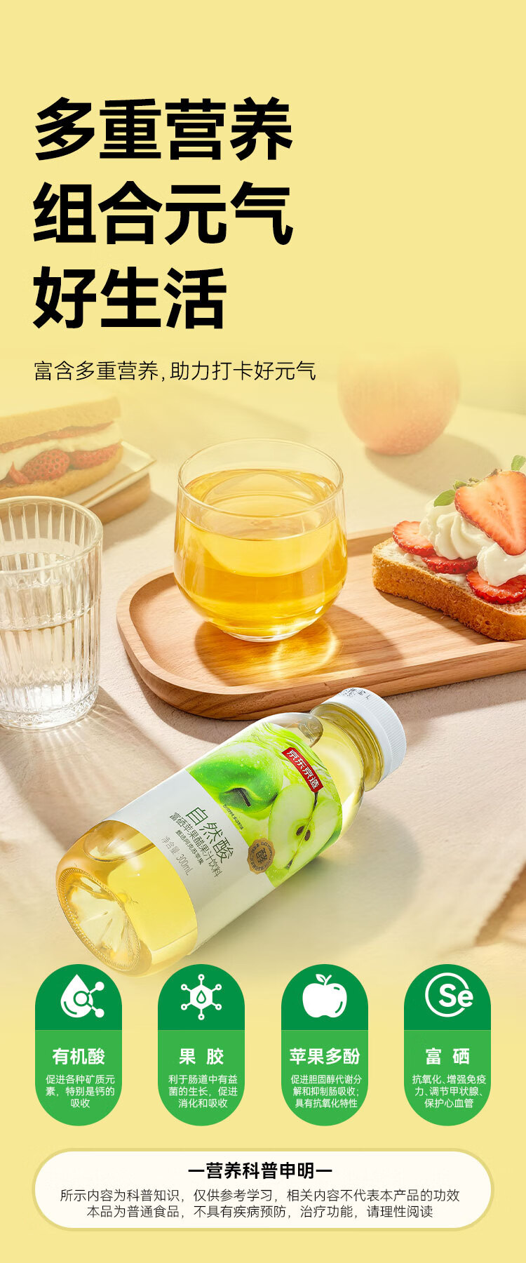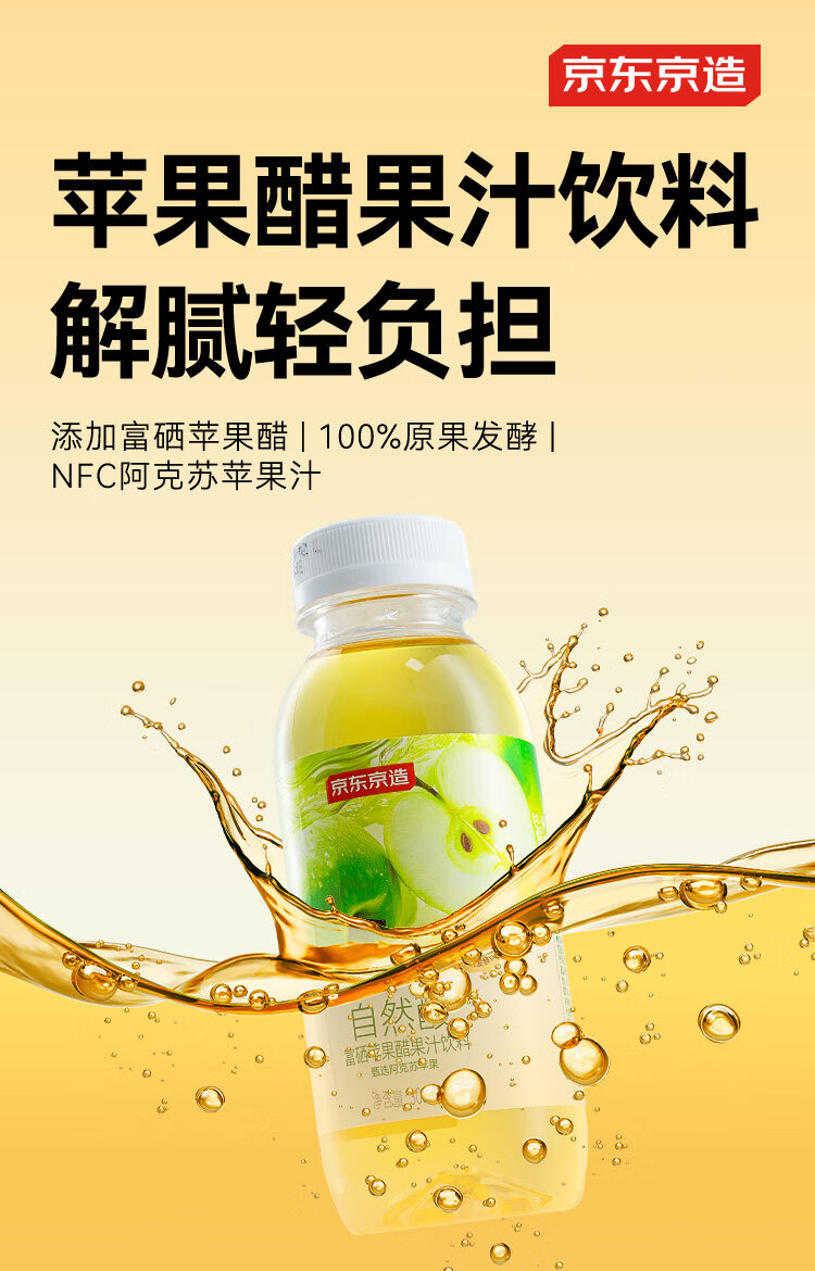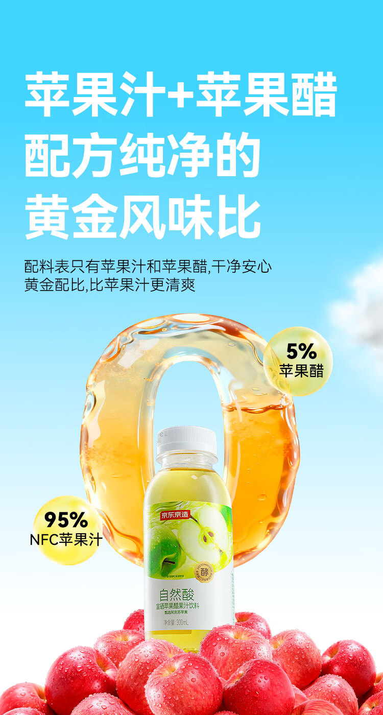 京东京造富硒苹果醋果汁饮料300ml*8瓶0脂0添加防腐剂发酵果醋