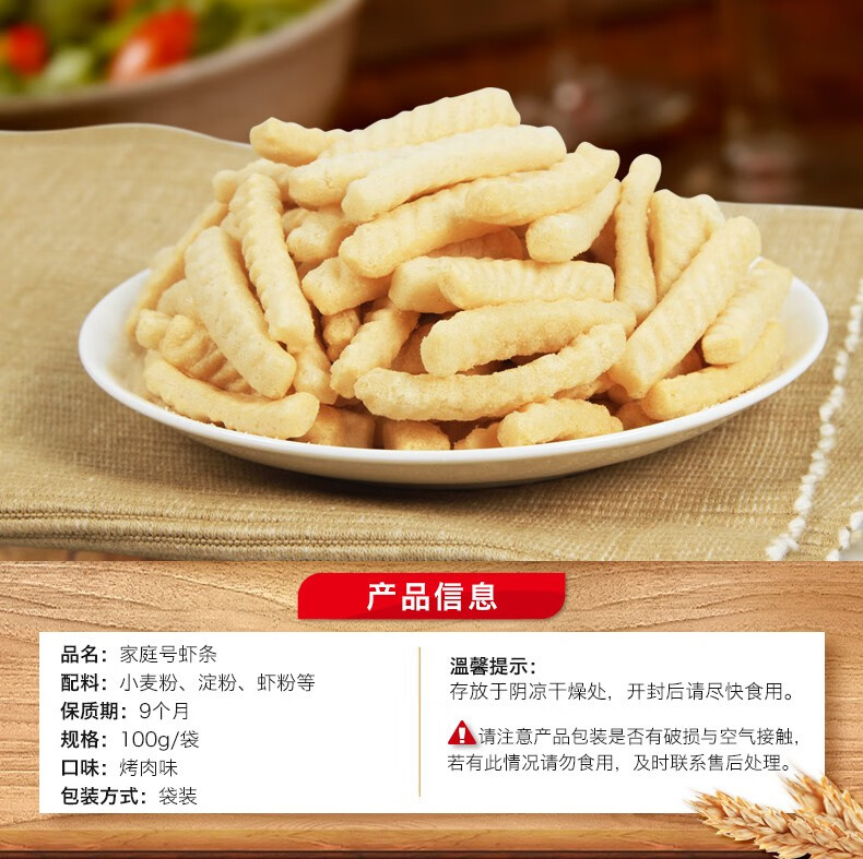 盼盼家庭号薯片膨化食品休闲办公室儿时经典薯片薯条虾条零食 烤肉味虾条100g