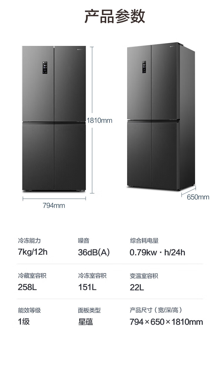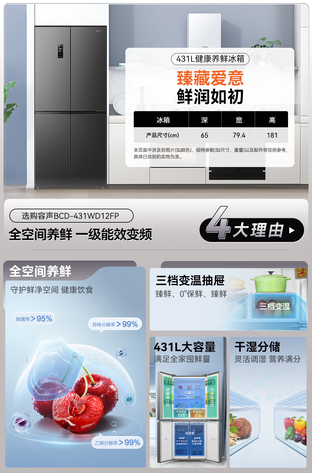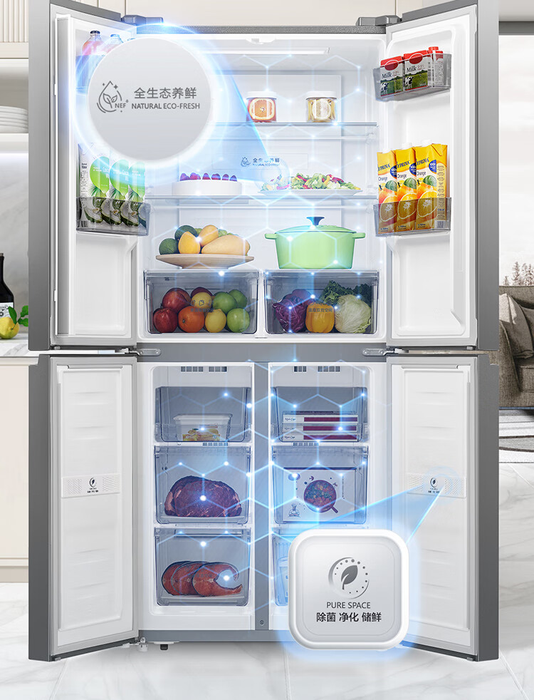 容声431升十字对开门冰箱全空间净化升级四开门一级能效变频大容量风冷无霜 以旧换新 BCD-431WD12FP灰