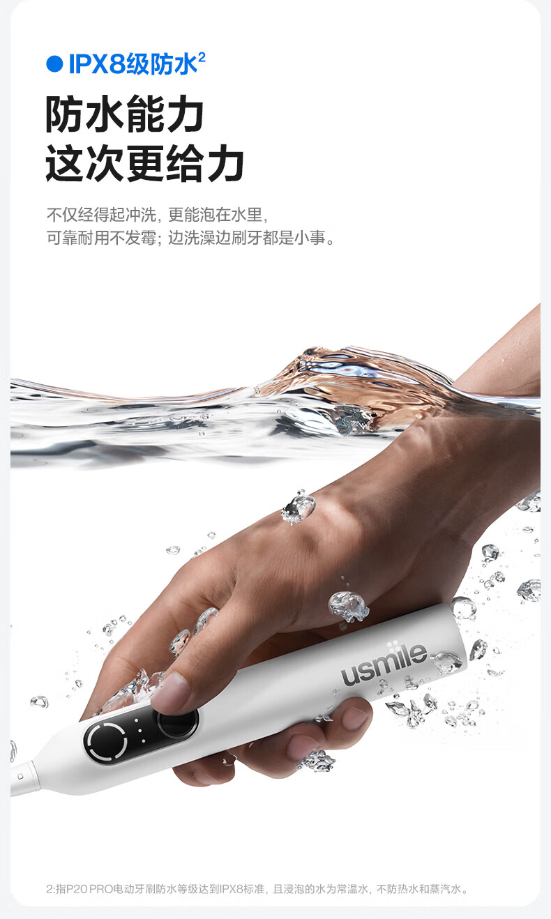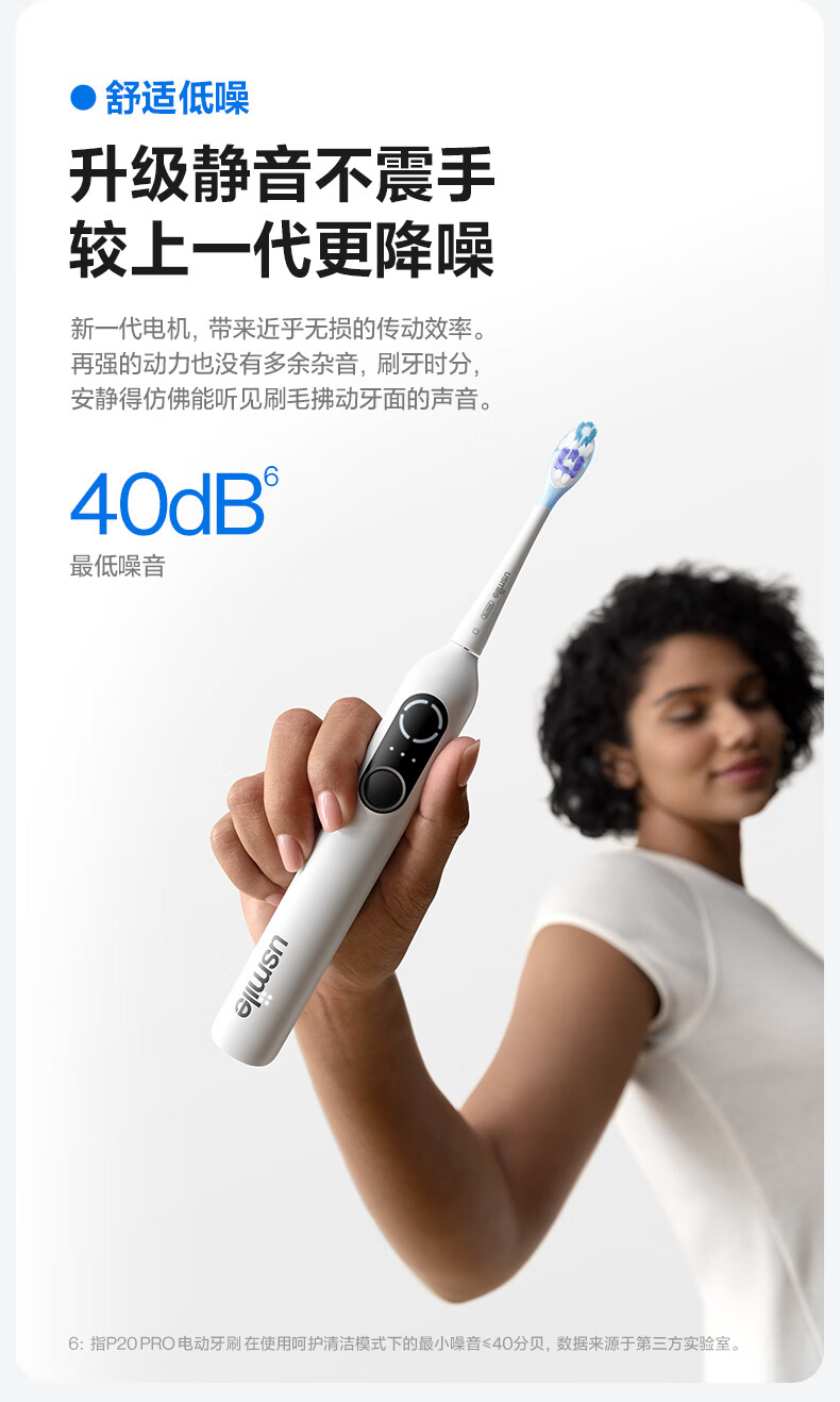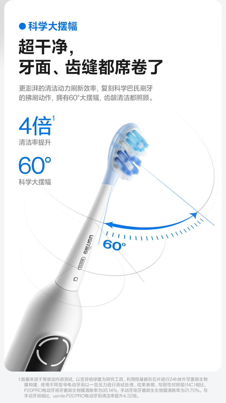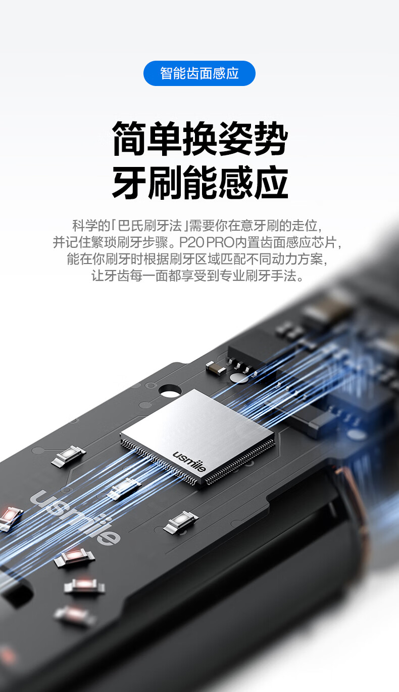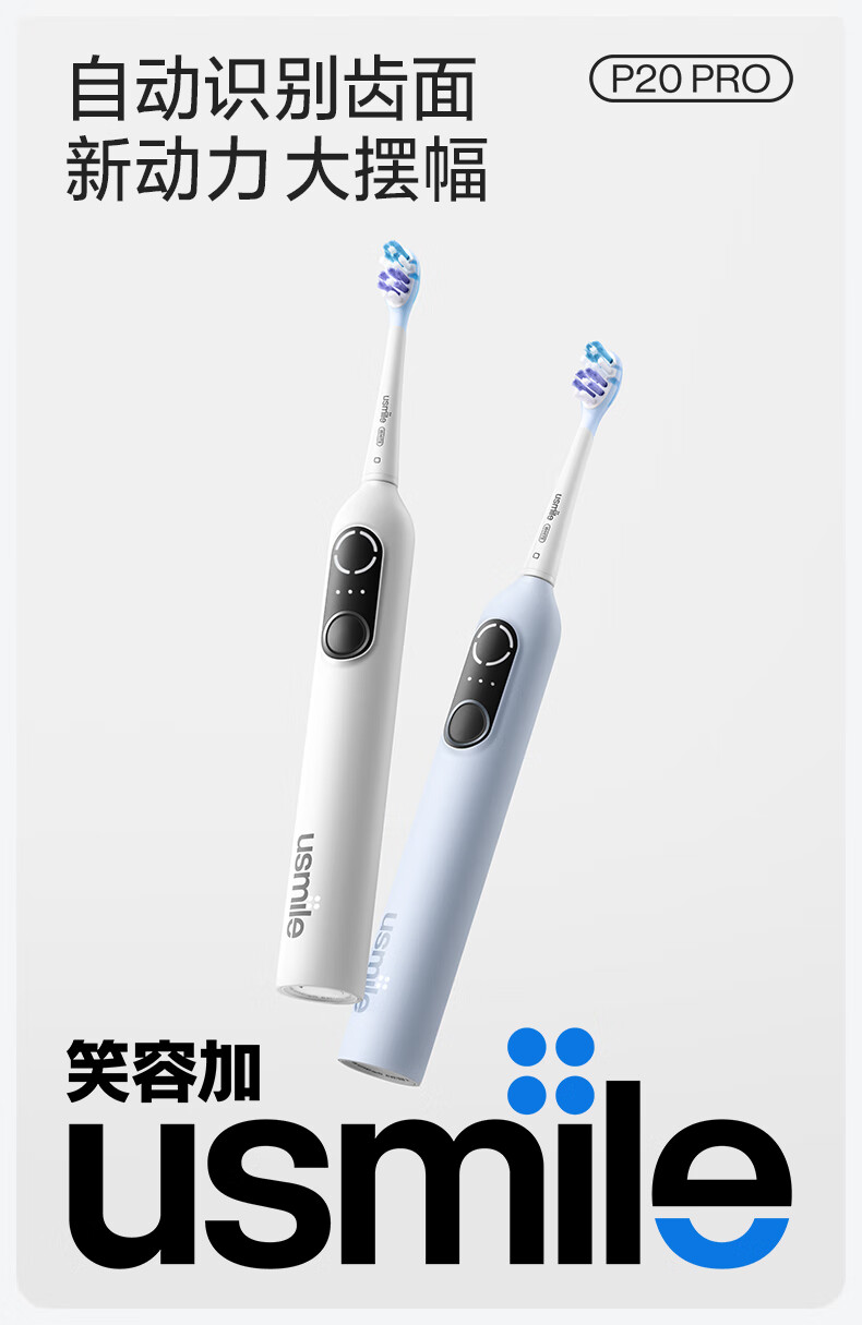 usmile笑容加智能扫振电动牙刷 P20PROS冰河白 大摆幅深度清洁护龈 成人情侣送男友/女友生日 新年礼物
