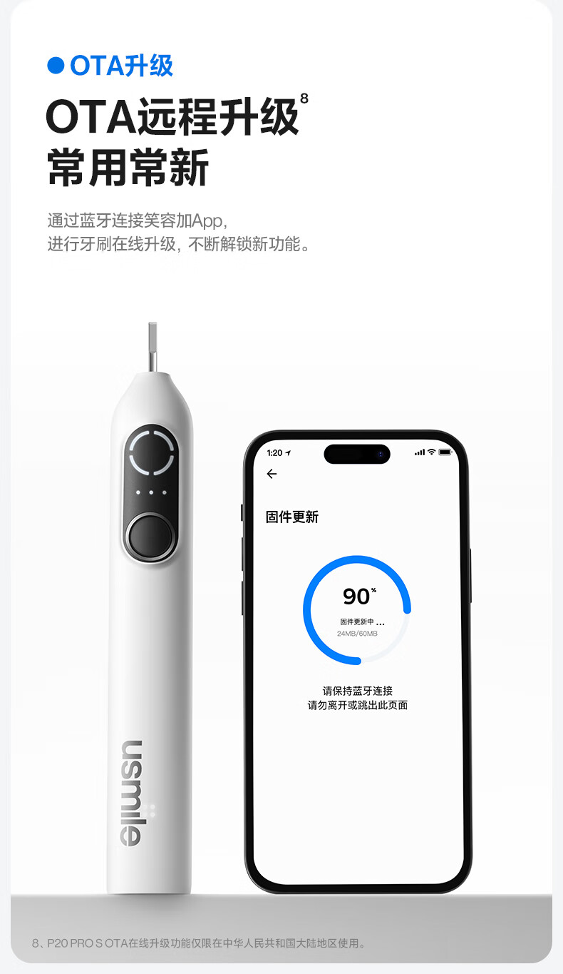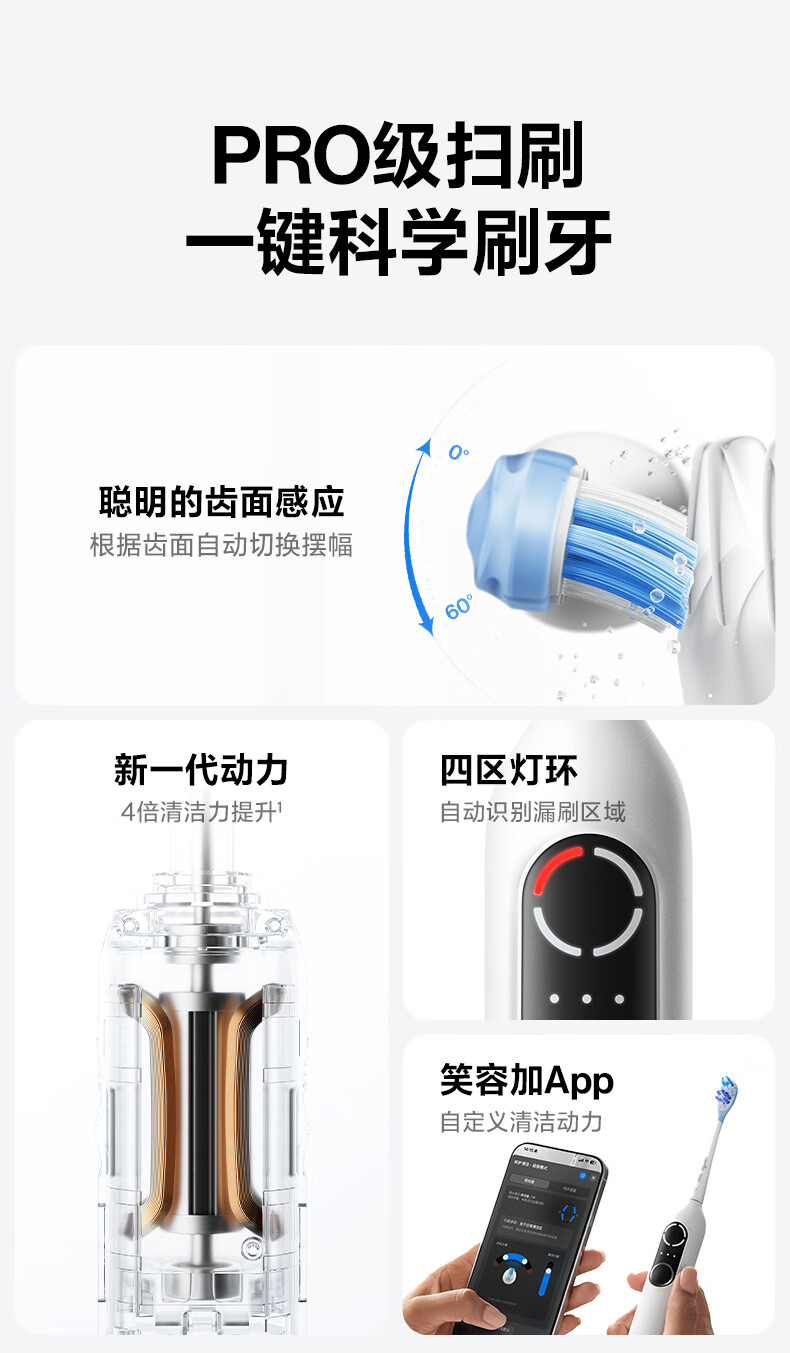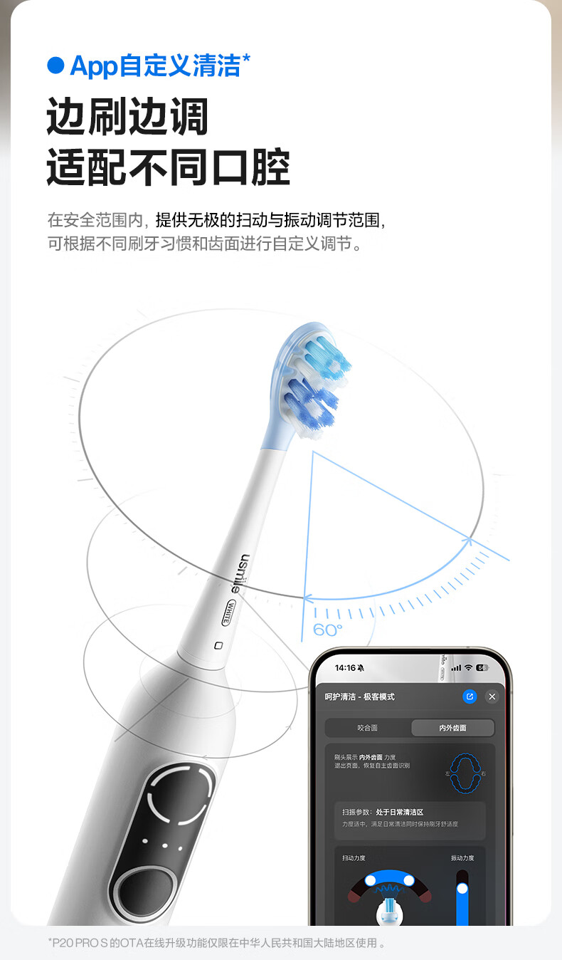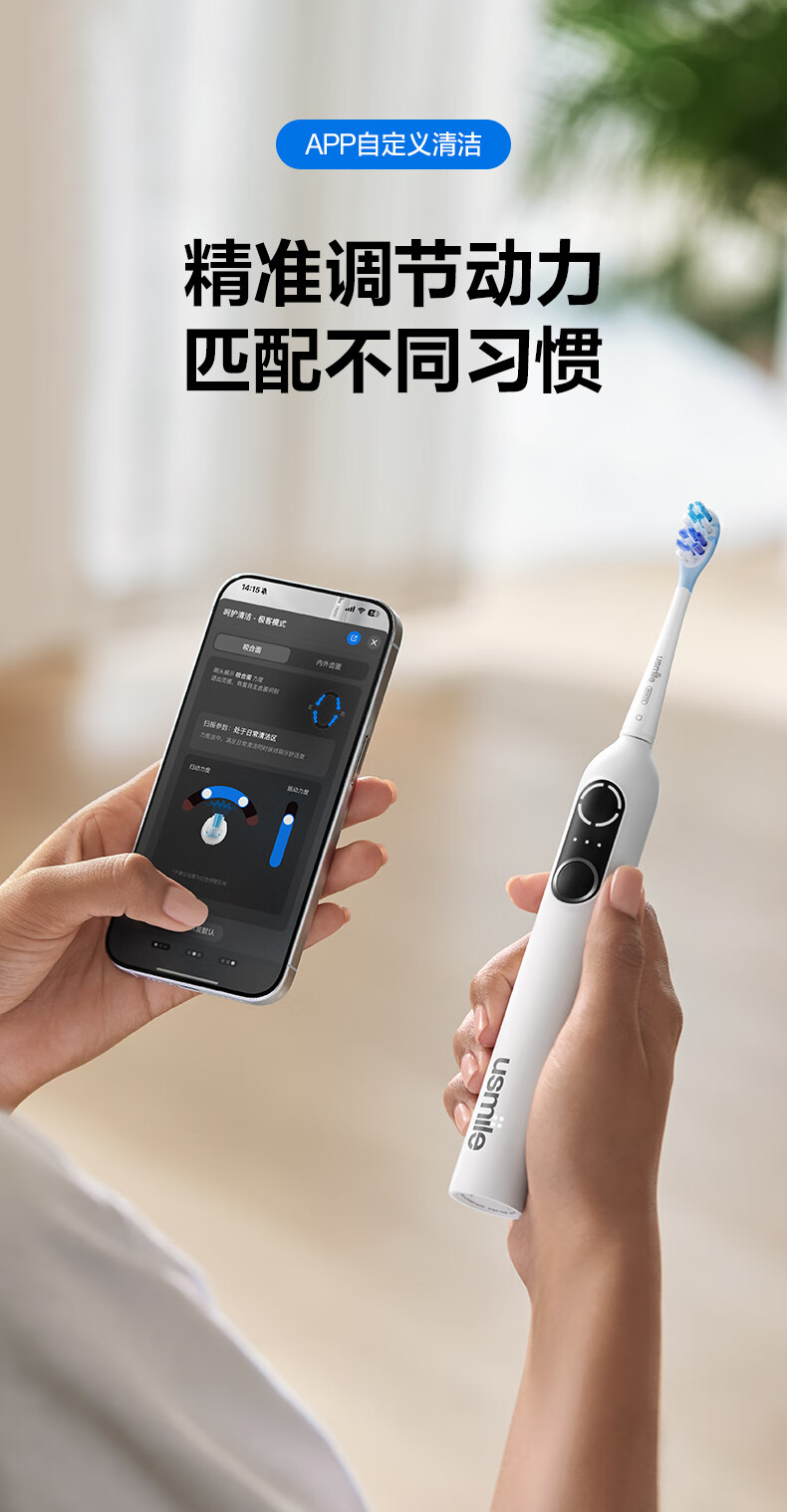 usmile笑容加智能扫振电动牙刷 P20PROS冰河白 大摆幅深度清洁护龈 成人情侣送男友/女友生日 新年礼物