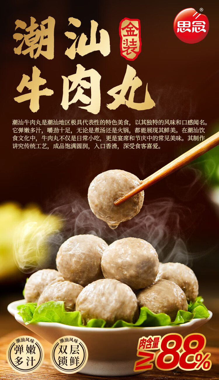 思念火锅食材丸子组合 撒尿肉丸牛筋丸牛肉丸鱼丸蛋饺烧烤丸子关东煮 潮汕牛肉丸252g