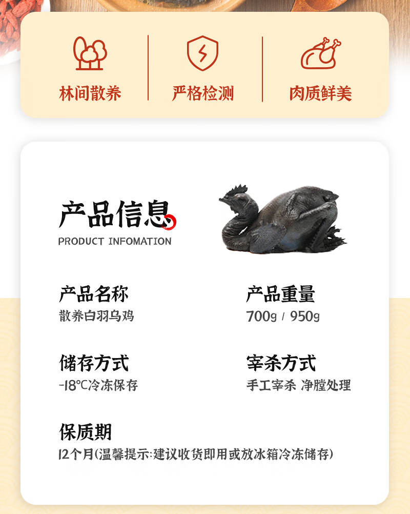 青草家乌鸡农家散养乌骨鸡新鲜冷冻散养乌鸡整鸡滋补煲汤炖汤生鲜950g*3 乌鸡950g*3只