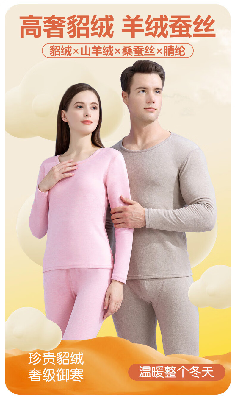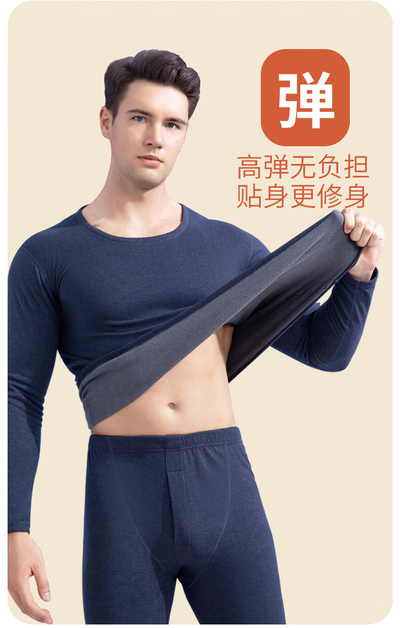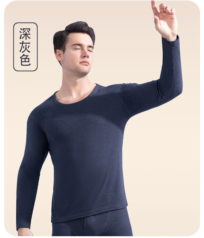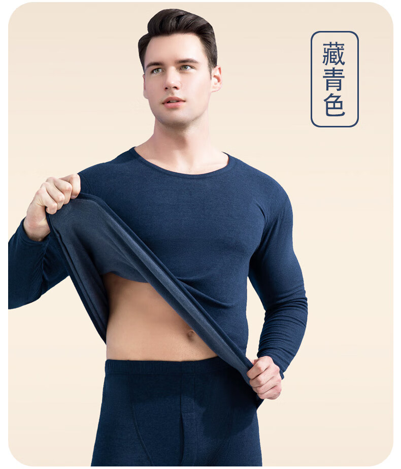 宜而爽纯色貂绒山羊绒蚕丝保暖套装圆领男女同款情侣款修身秋衣秋裤 男款【藏青】 4XL