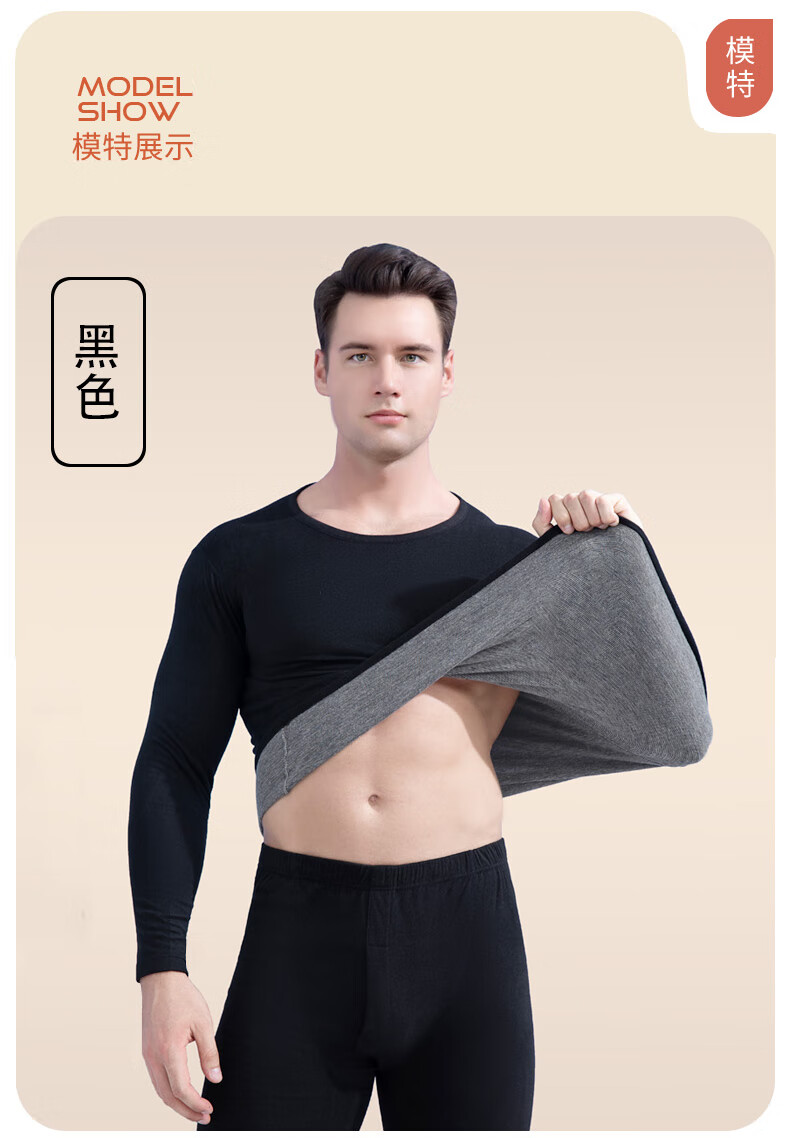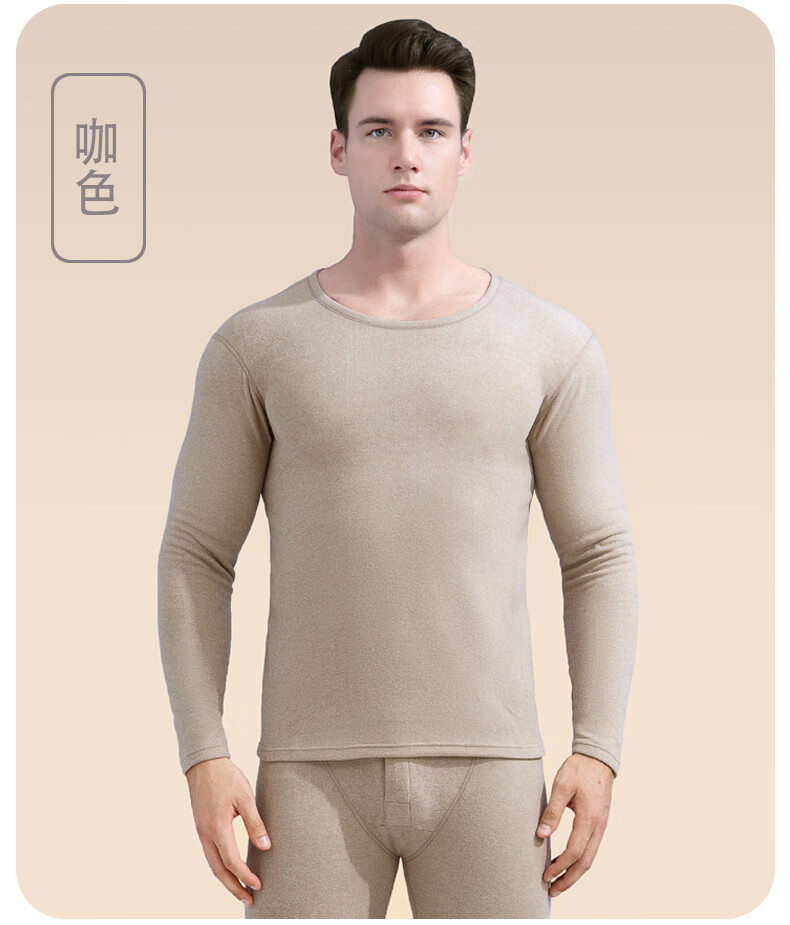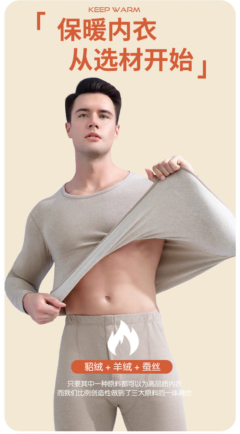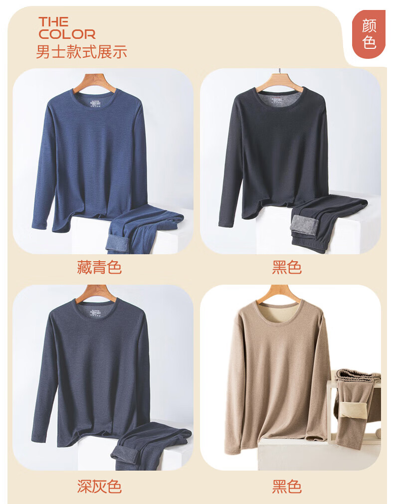 宜而爽纯色貂绒山羊绒蚕丝保暖套装圆领男女同款情侣款修身秋衣秋裤 男款【藏青】 4XL