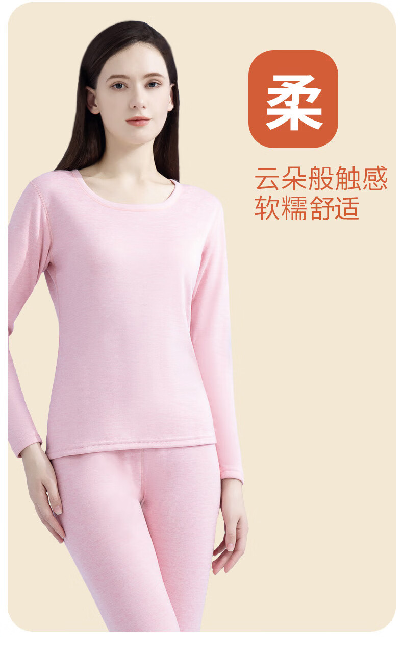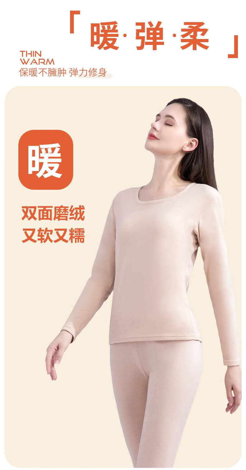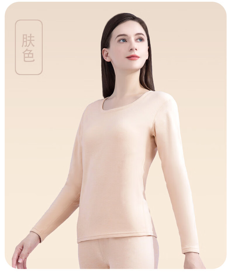 芬腾可安保暖美肤衣套装秋衣秋裤女肌底衣打底衫内搭保暖内衣女冬季润肤 白色 L (90-130斤)
