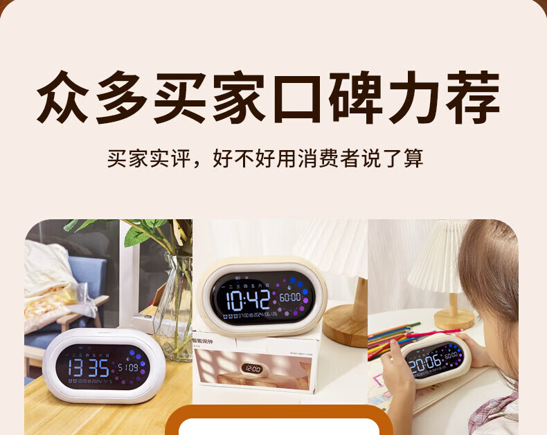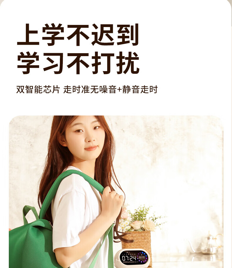AILUKI【法国】闹钟学生专用起床神器智能2025新款学生开学叫醒声音大儿童时钟儿童男孩女孩用强力叫醒 充电款-双倍续航象牙白