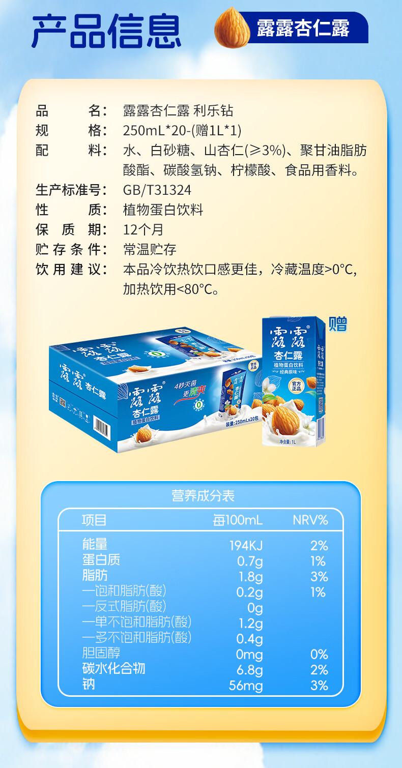 露露杏仁露【顺丰包邮赠1盒1L】经典利乐钻250mL*20【汕头露露】年货N 250mL*20