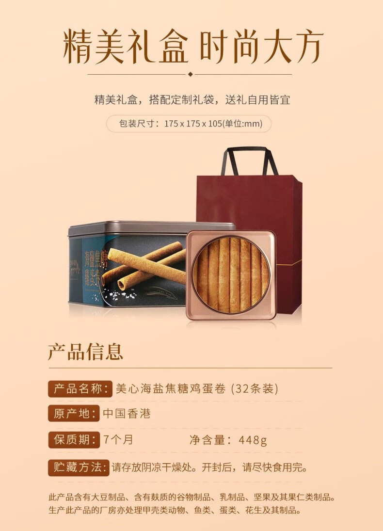 美心(Meixin)海盐焦糖鸡蛋卷448g(32条装)黄油鸡蛋卷节日送礼 效期至3月6日 美心海盐焦糖鸡蛋卷(32条装)448g