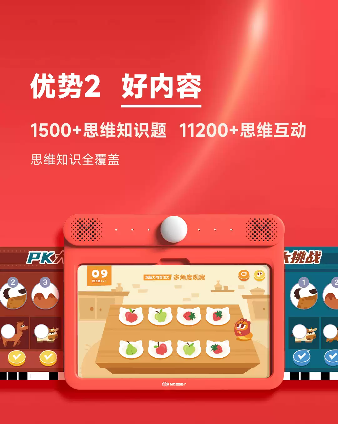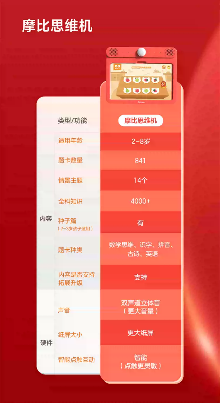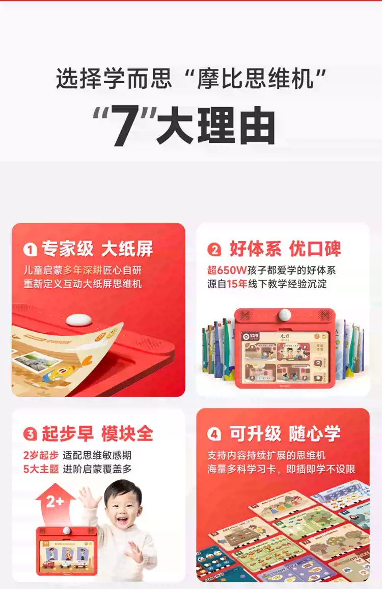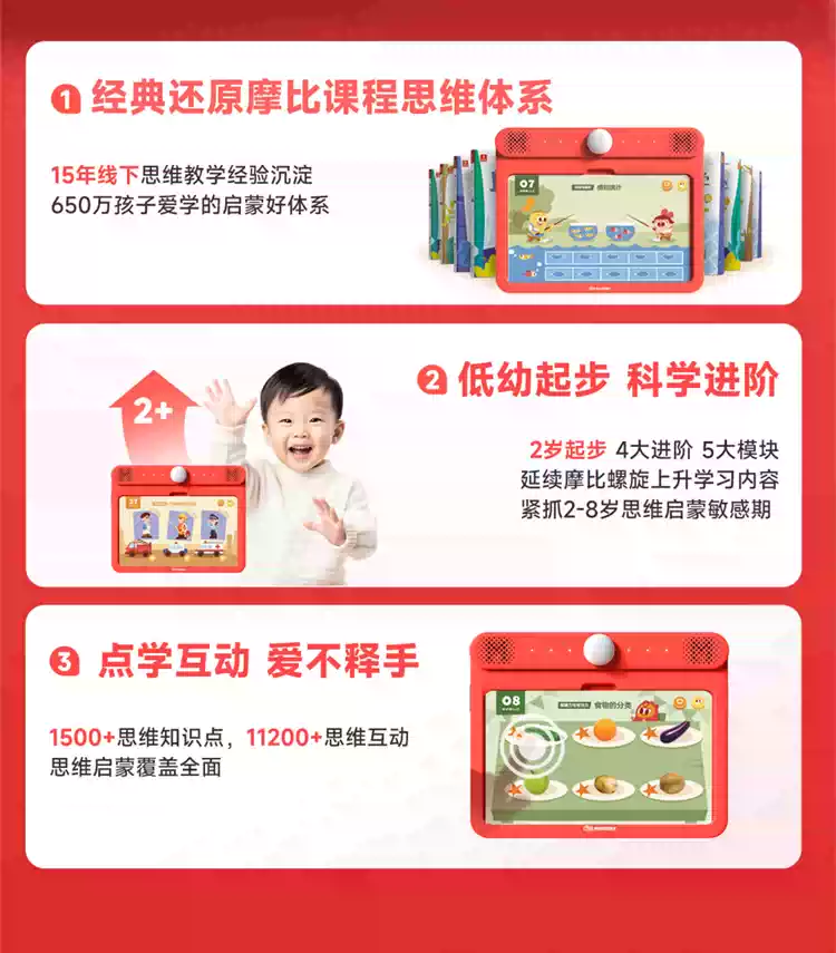 学而思摩比思维机/启蒙机题卡幼儿小孩儿童早教机全科学习机逻辑训练机英语磨耳朵拼音国学识字点 3岁+摩比数学思维萌芽篇 512MB