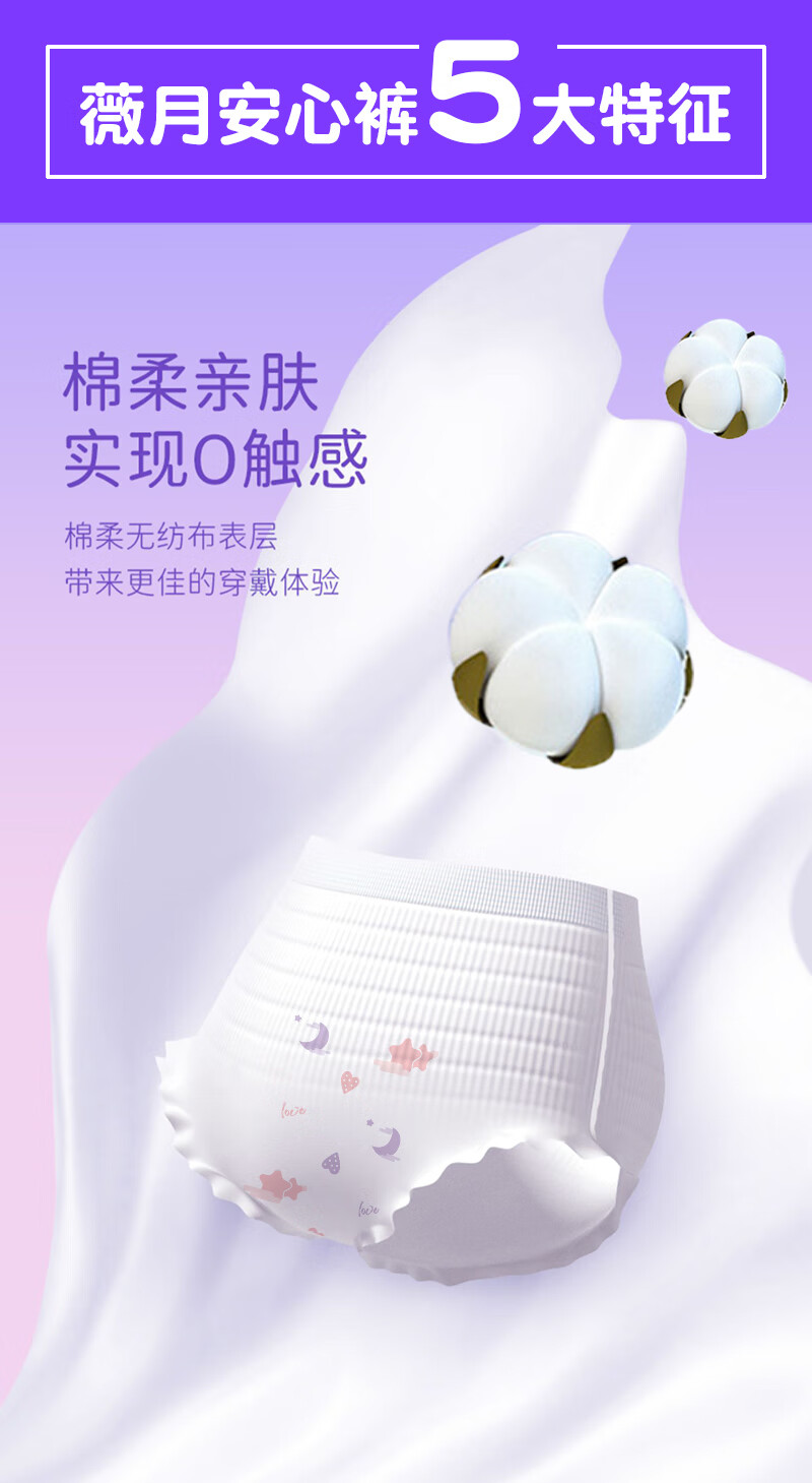 薇月安睡裤臻棉薄经期轻薄透气防漏安心裤夜用裤型卫生巾舒适夜安裤 XL 20条 120-170斤 [热卖装]