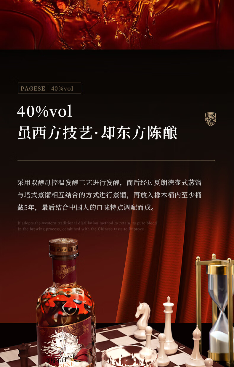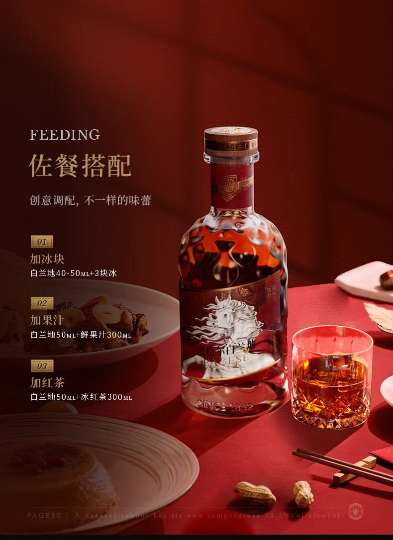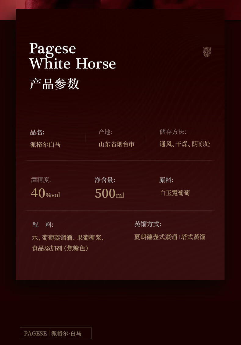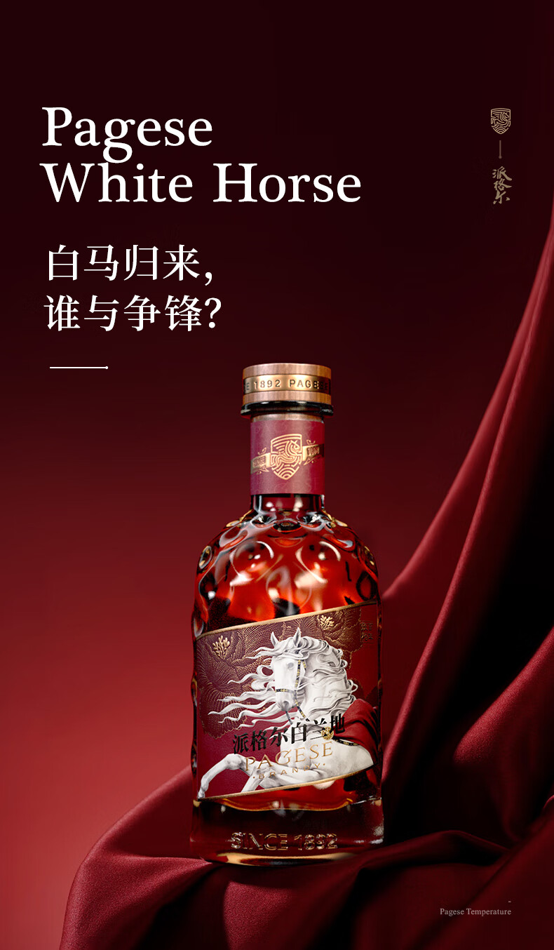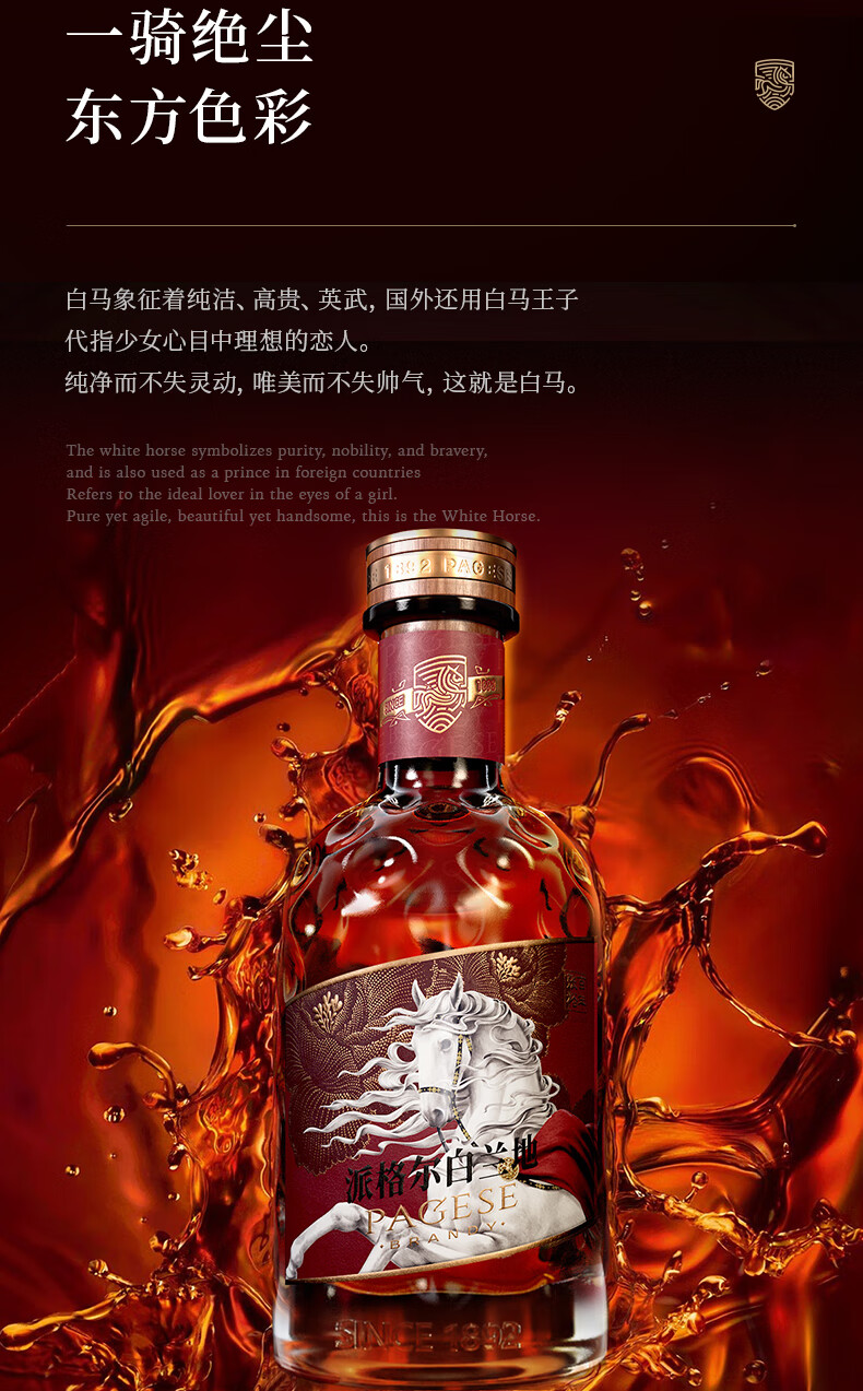 张裕【新品】派格尔白马白兰地500ml礼盒装洋酒 40度 葡萄蒸馏一级酒 500mL 1瓶