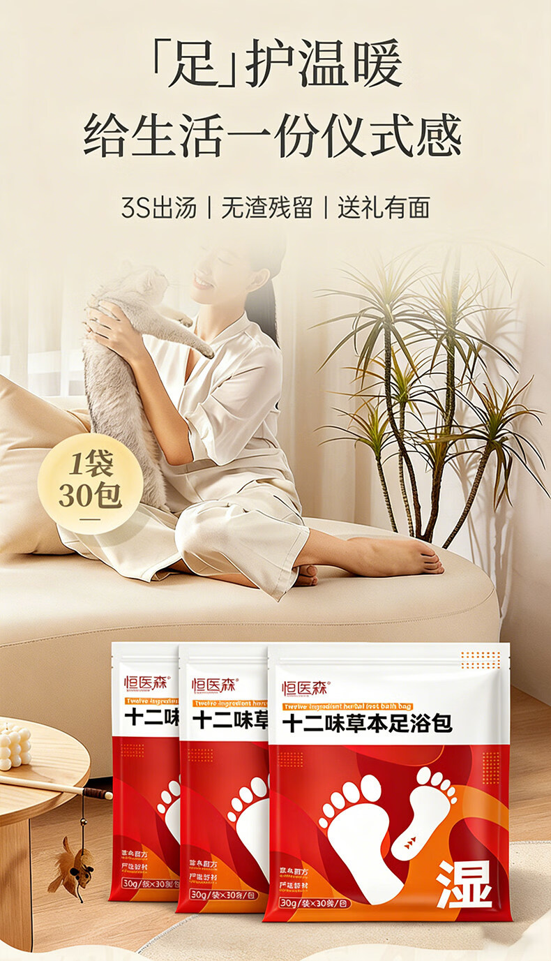 恒医森十二味泡脚药包 30包 祛湿排毒助睡眠艾草生姜养生足浴中药包非渣 3包【四季皆可泡】