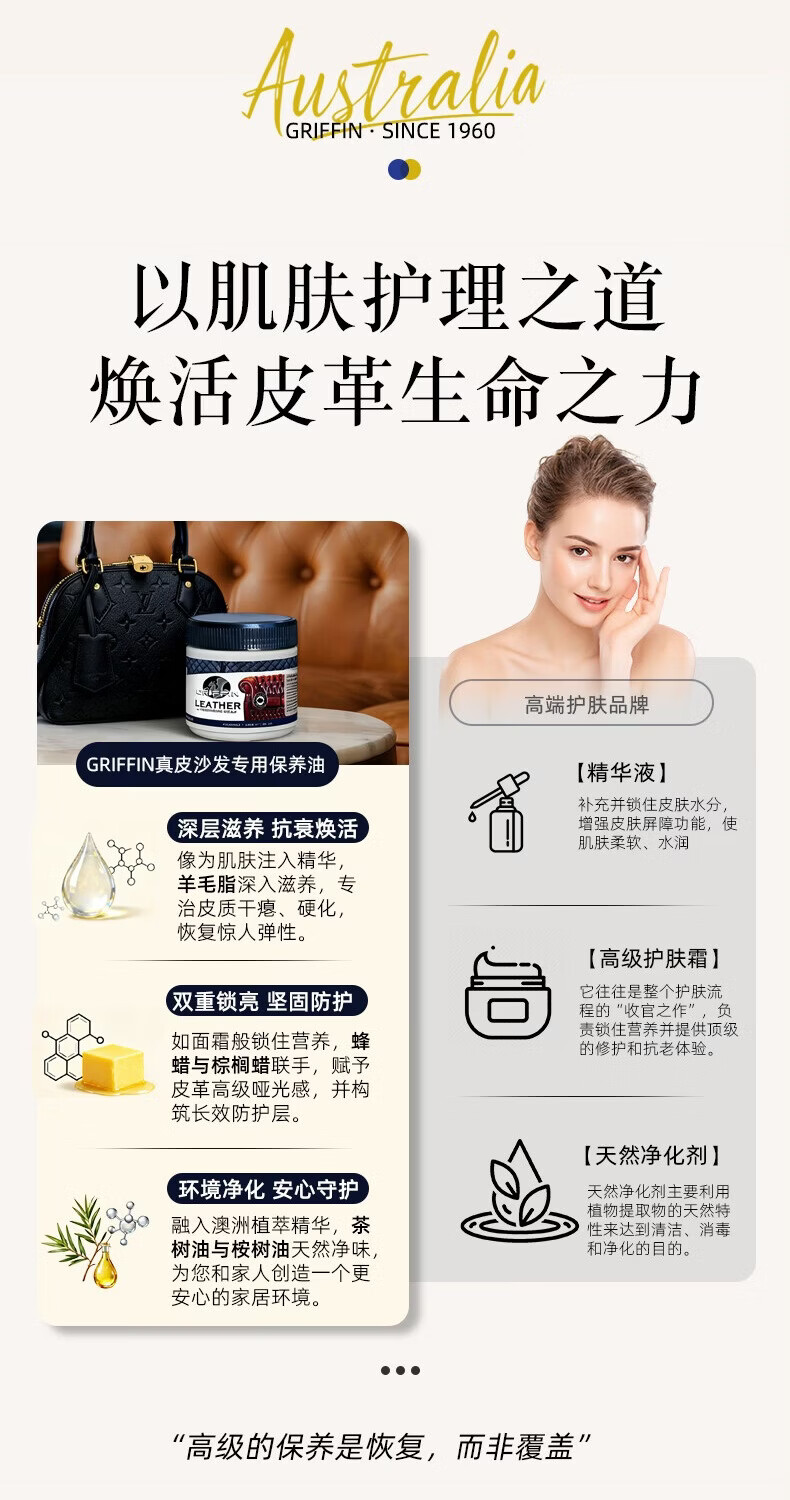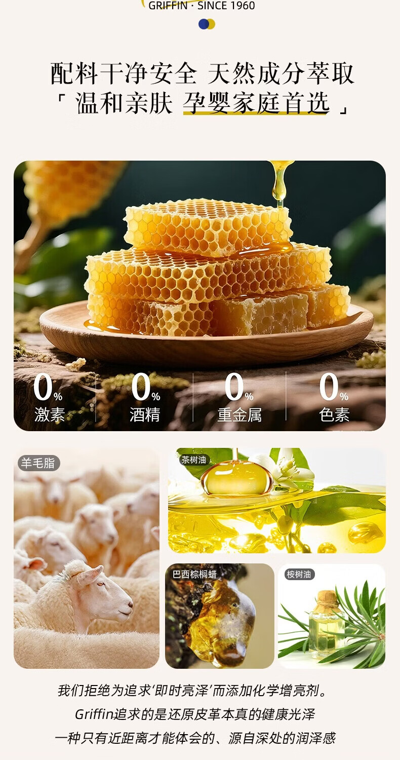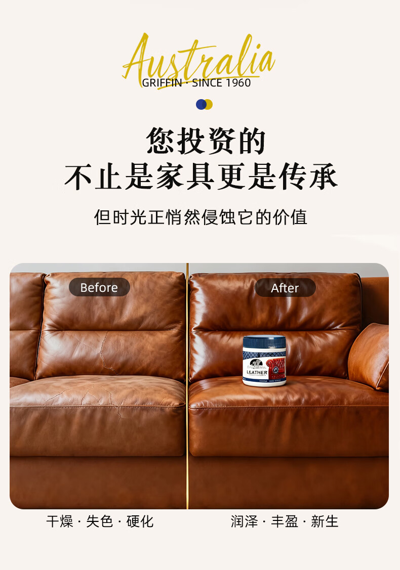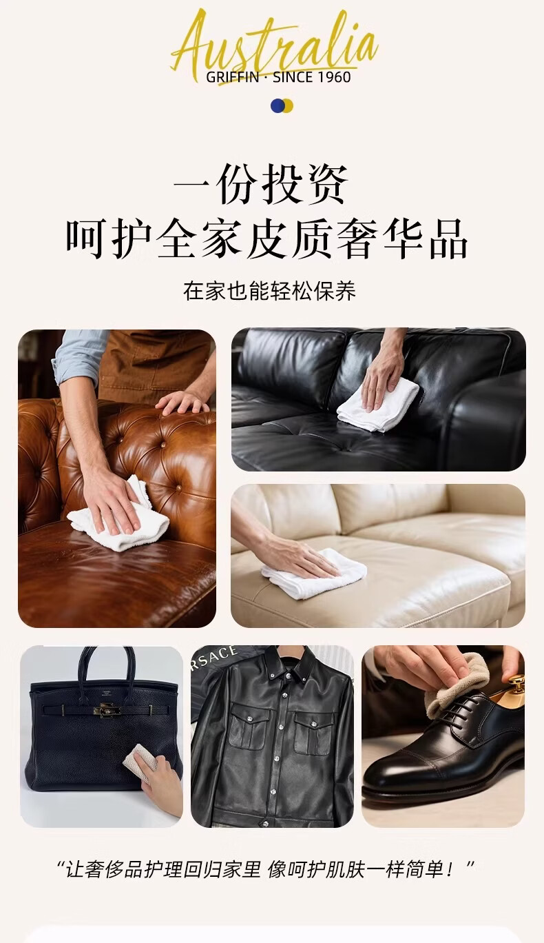 GRIFFIN澳洲皮革护理剂皮衣保养油皮包真皮沙发滋养油汽车真皮座椅保养油 1瓶皮革护理剂