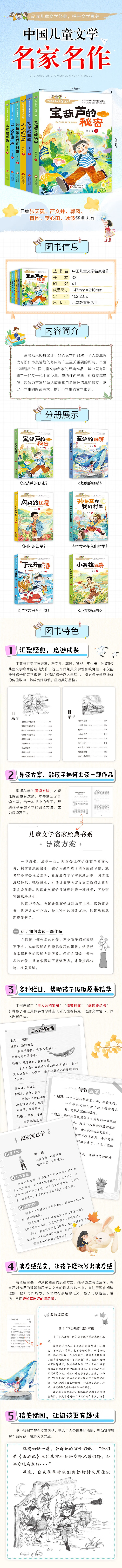 中国儿童文学名家名作【套册自选】宝葫芦的秘密+ 闪闪的红星+小英雄雨来+蓝鲸的眼睛+孙悟空在我们村里+下次开船港 儿童文学名家名著 小学阅读指导目录 宝葫芦的秘密+小英雄雨来+闪闪的红星