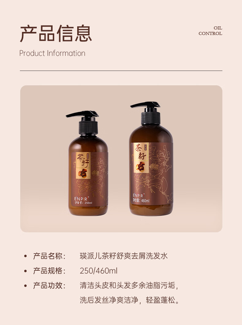 瑛派儿官方茶籽舒爽去屑洗发水茶籽精华清爽洗发露男女士蓬松发水 舒爽去屑460ml