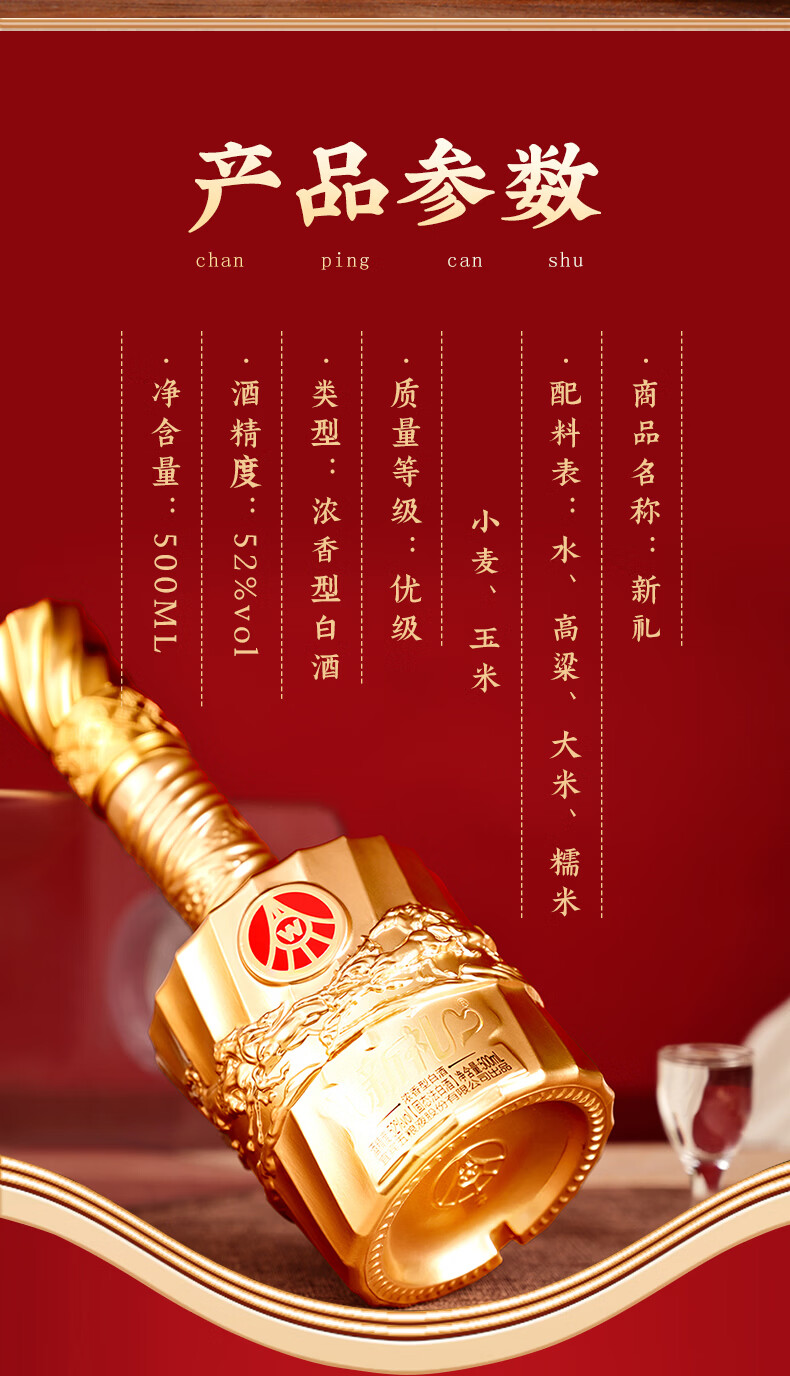 五粮浓香五粮液股份出品 工匠华礼 浓香型白酒 礼盒装 52度 500mL 2瓶 金瓶