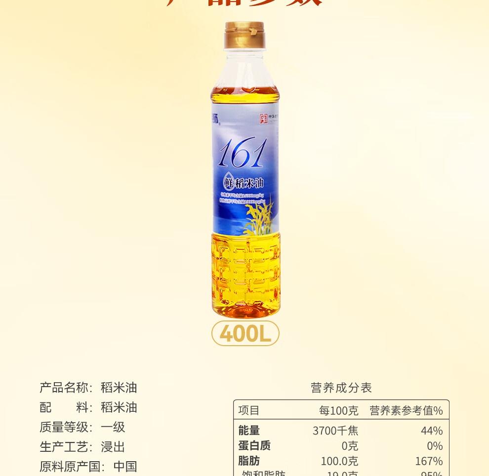 海狮鲜稻米油400ml 家用食用油 谷维素高于16000ppm 中华老字号