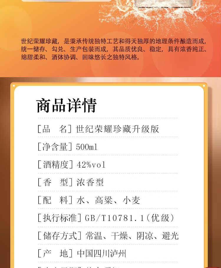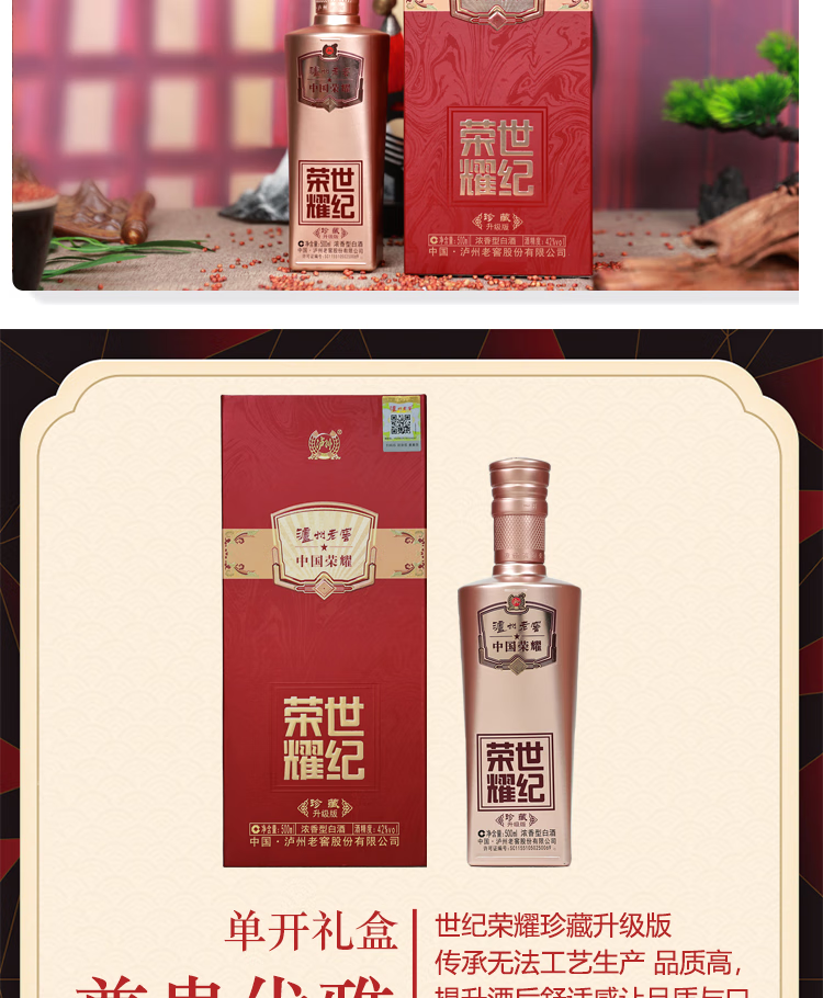 泸州老窖世纪荣耀珍藏升级版 42度浓香型白酒 婚宴宴请商务送礼 500ml 1瓶