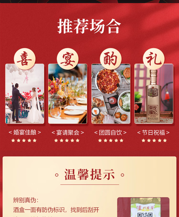 五粮浓香【五粮液出品】 福喜迎门 高度白酒 送礼宴饮 52度 500mL 2瓶 红色双瓶