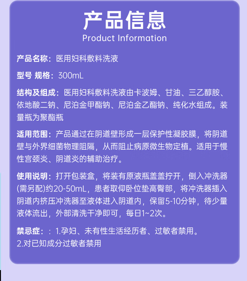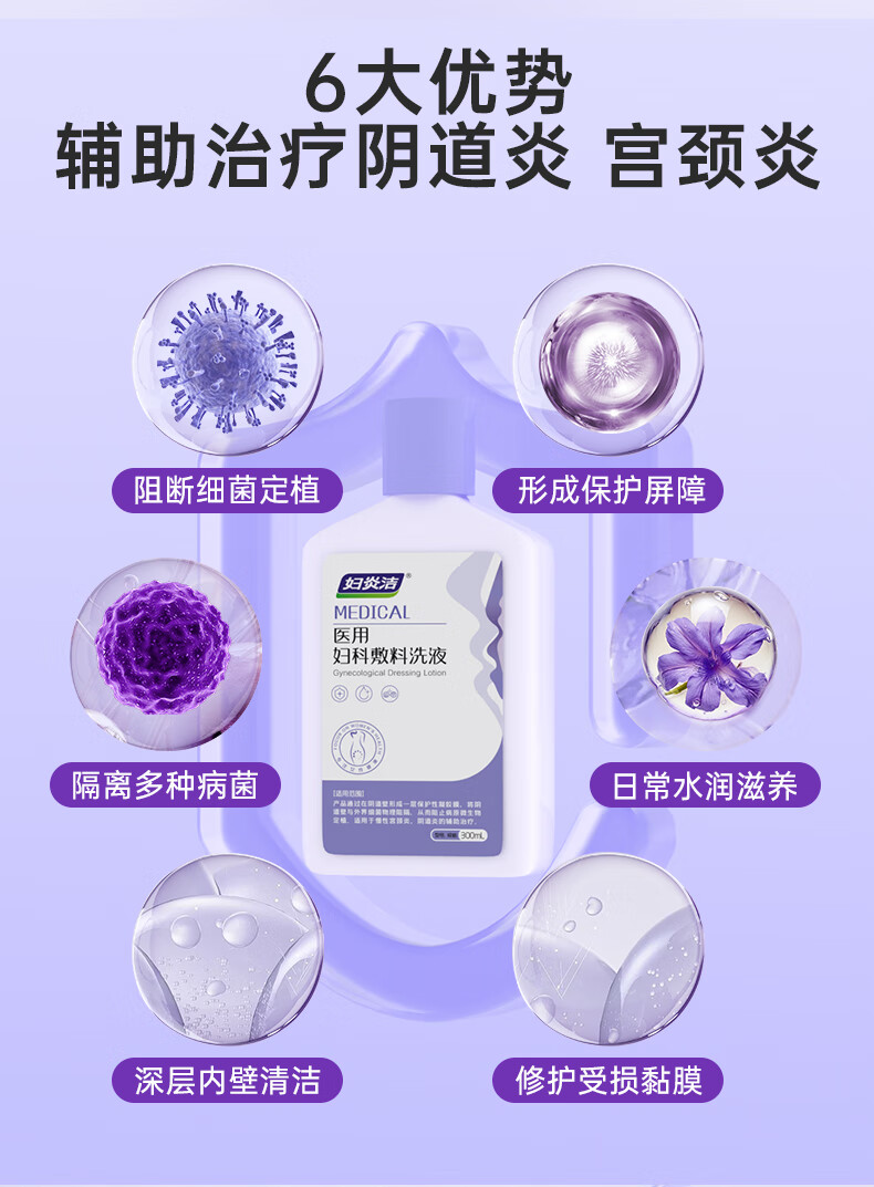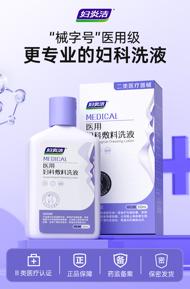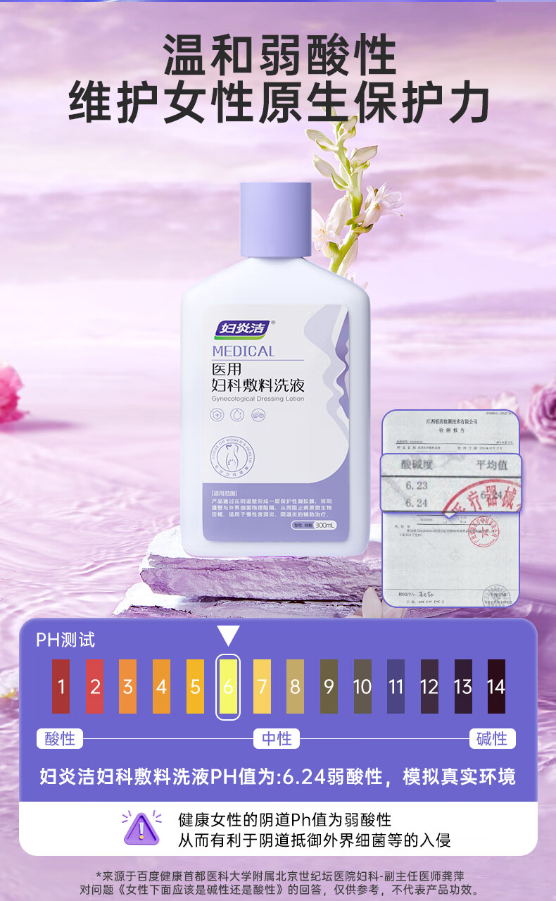 妇炎洁 医用妇科敷料洗液300ml宫颈炎阴道炎白带异常瘙痒异味红肿灼痛 医用妇科凝胶1盒7支【体验装】