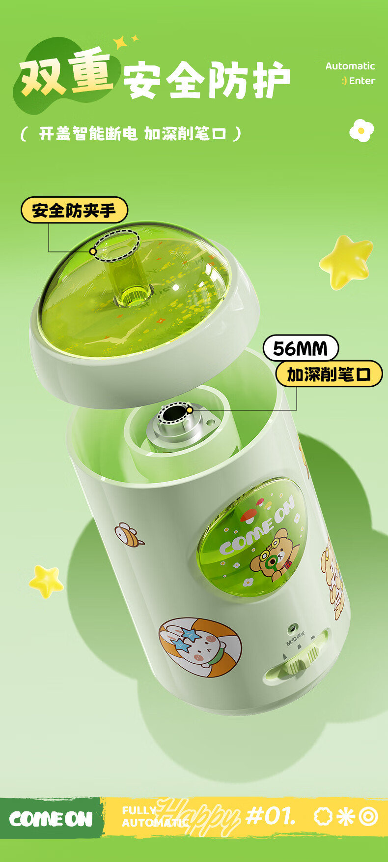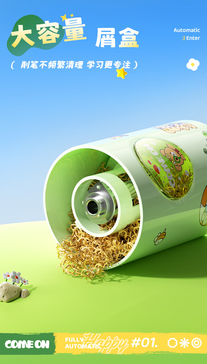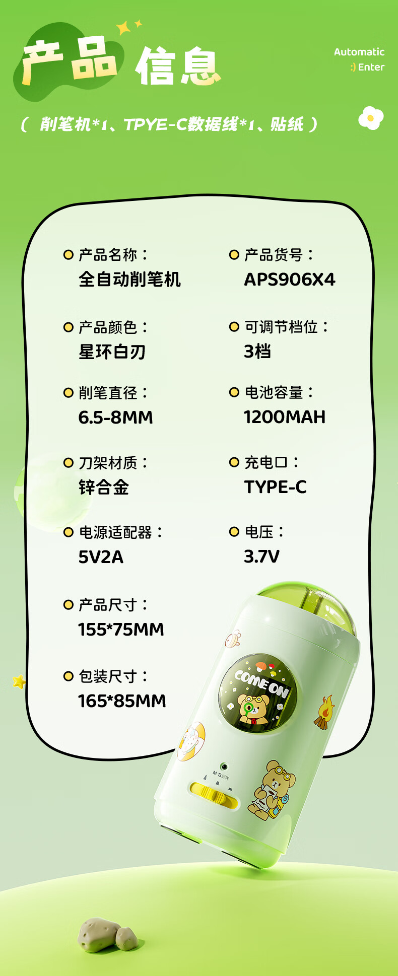 晨光(M&G)文具小宝全自动削笔器三档粗细电动卷笔刀转笔刀铅笔削笔刀一年级礼物APS906X4开学文具