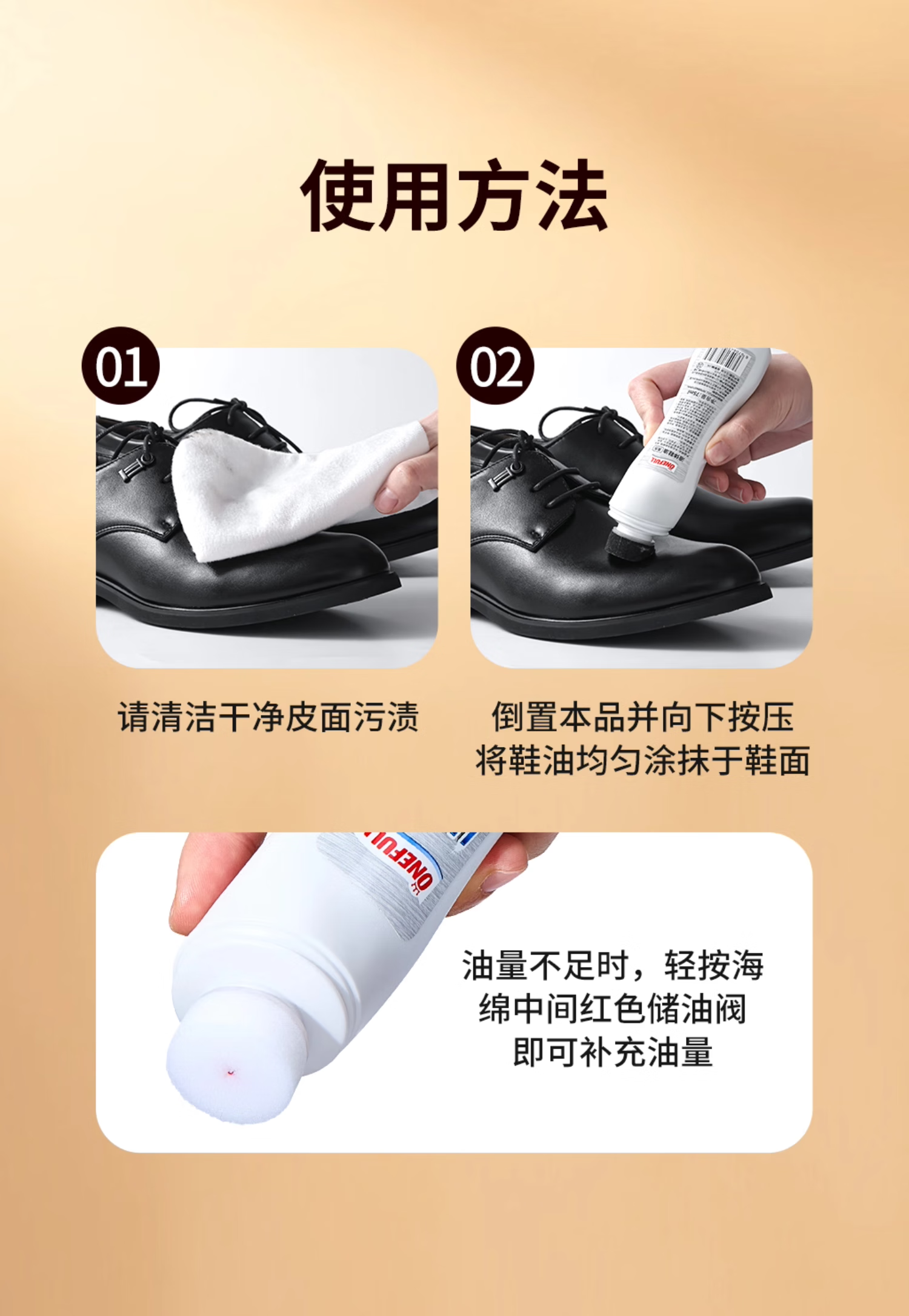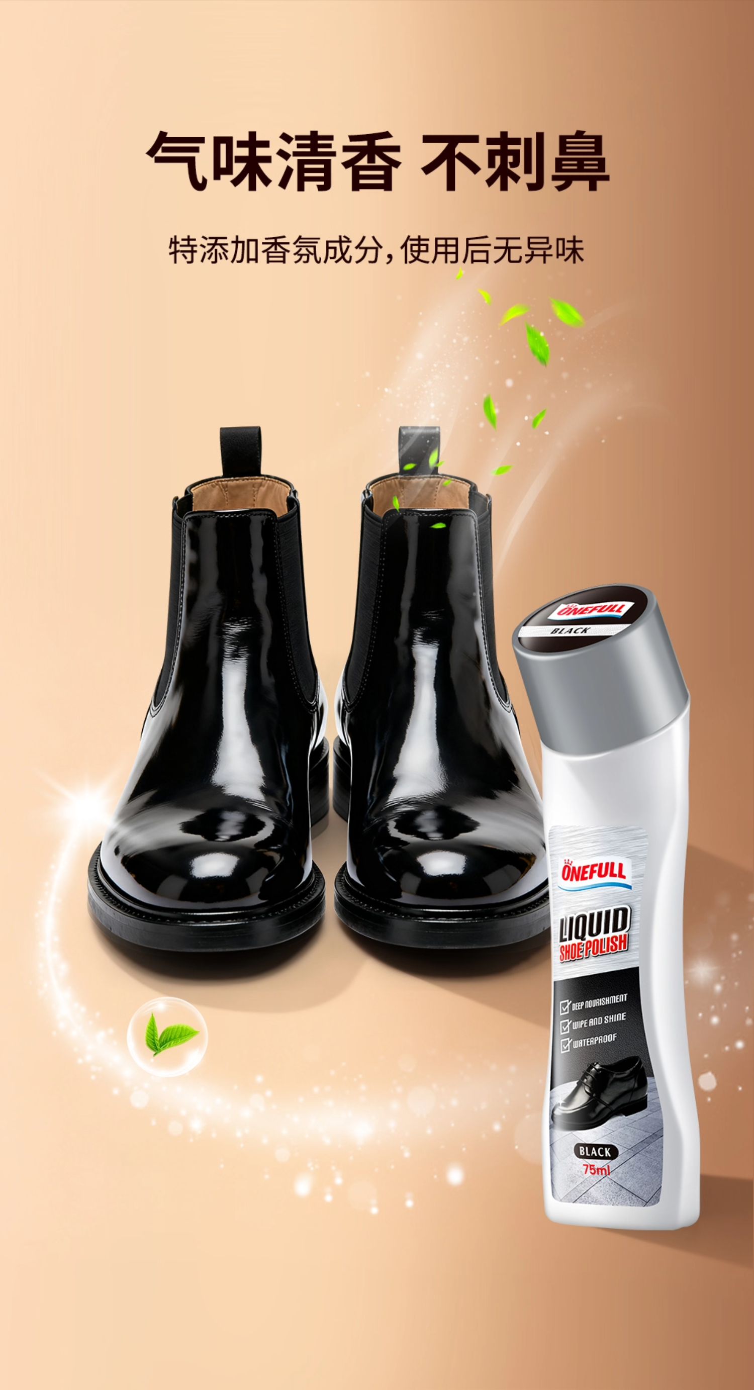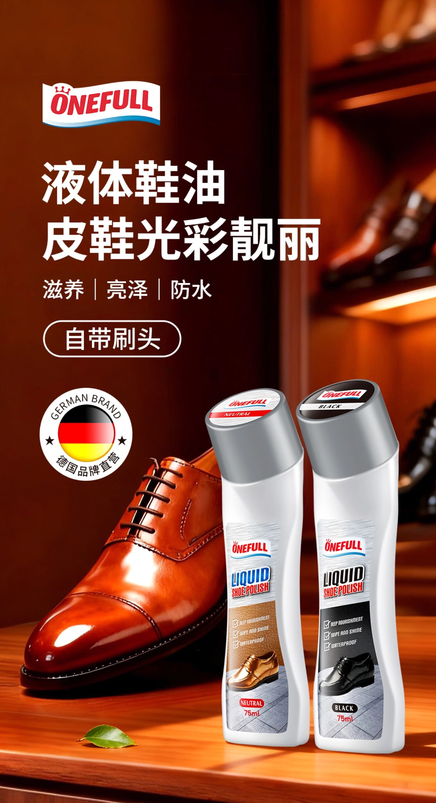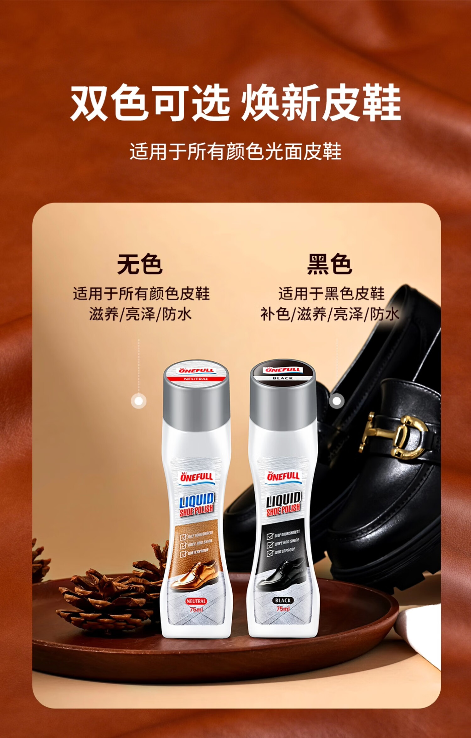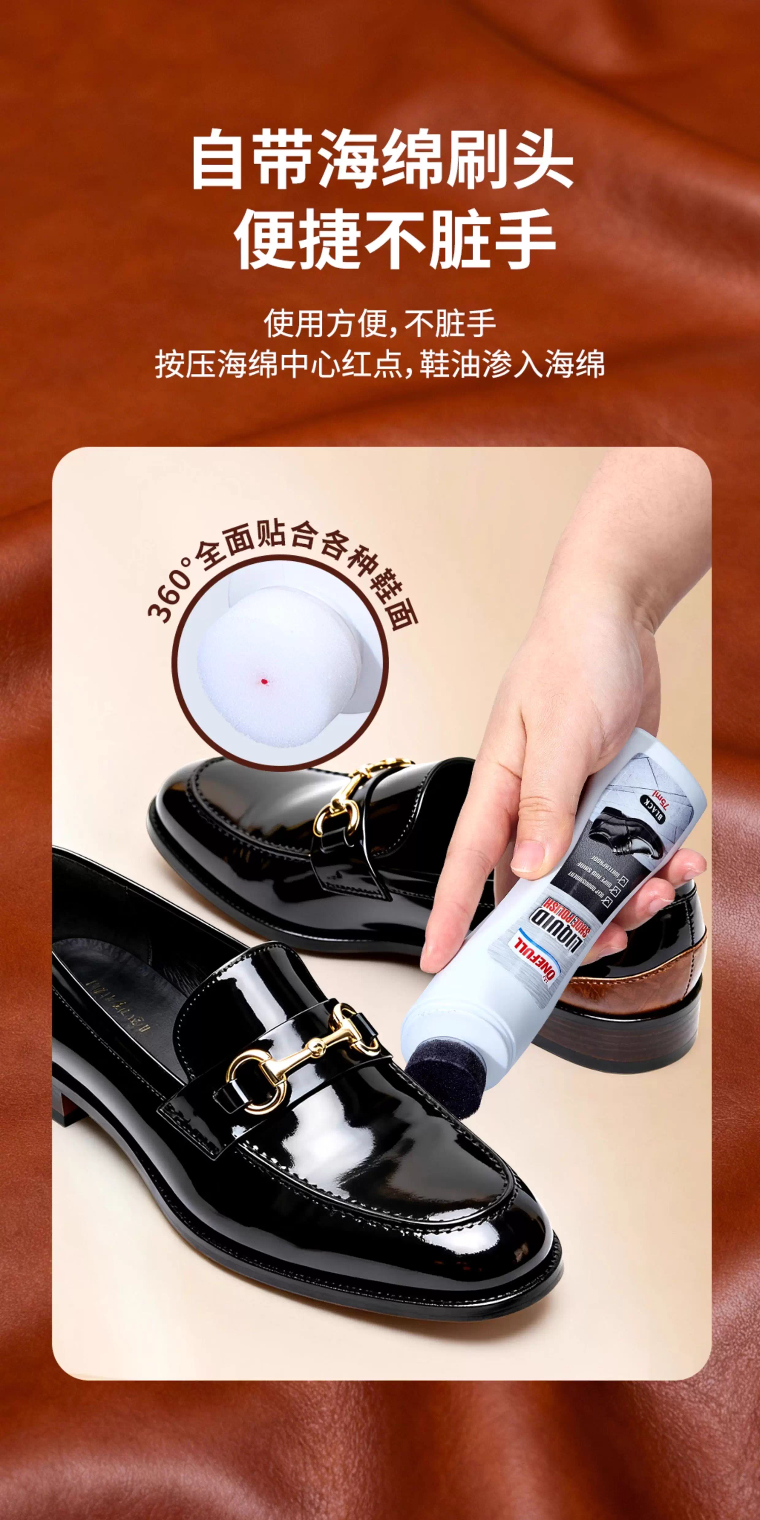 ONEFULL液体鞋油黑色真皮专用保养油无色皮鞋油通用速亮擦鞋神器 黑色 75ml 1支 【自带刷头】
