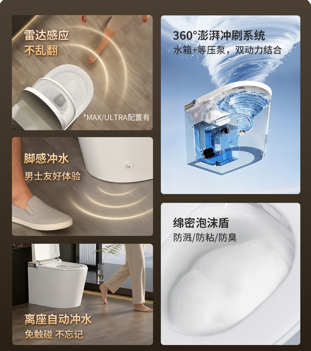 东鹏(DONGPENG)智能马桶升级静音冲零水压雷达翻圈抑菌座圈小户型坐便器免费送装 【轻智能Pro】P614C | 抗菌座圈+泡沫盾 305/300mm