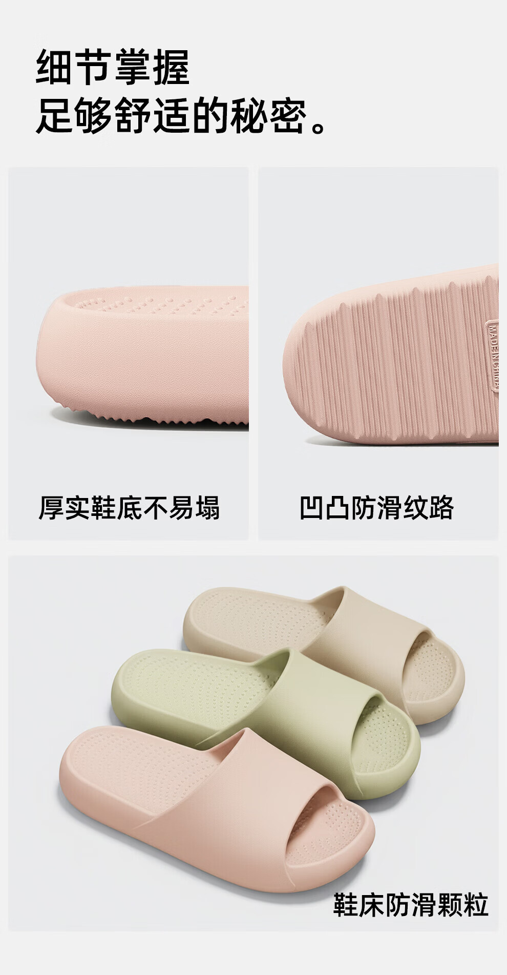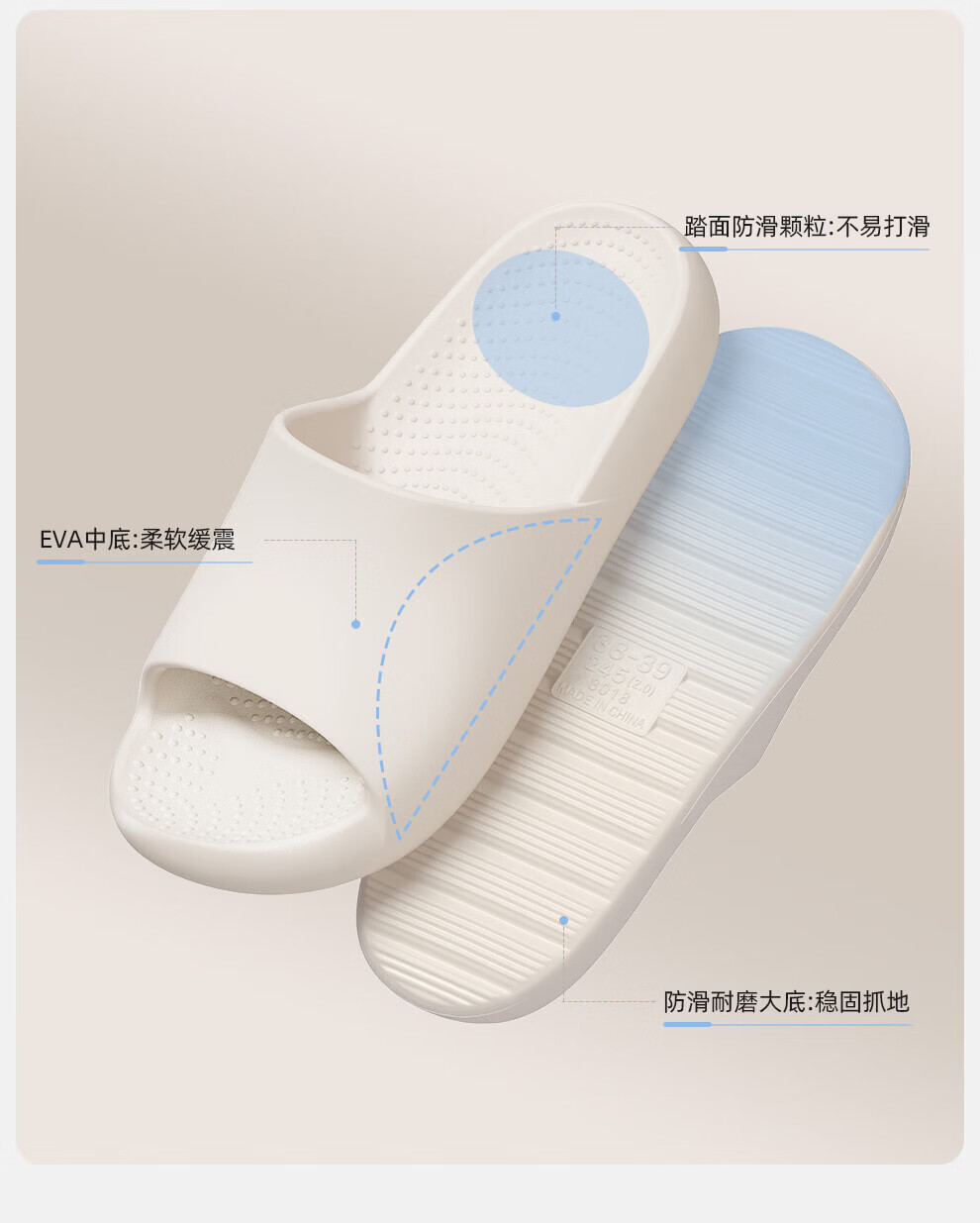 FZT微足弓支撑凉拖鞋女2026新款居家室内轻盈贴脚防滑软弹加厚拖鞋男 卡其 44-45 正码