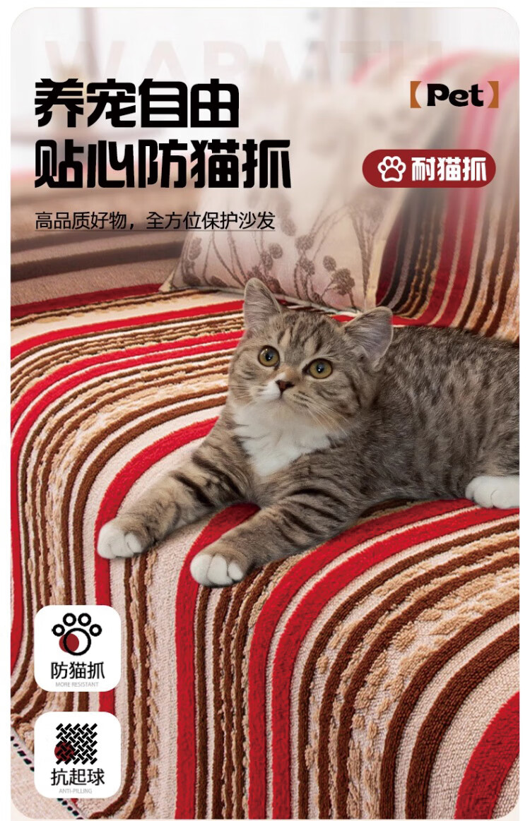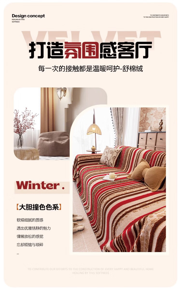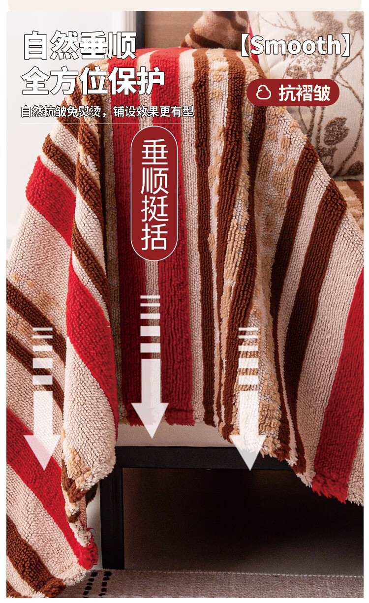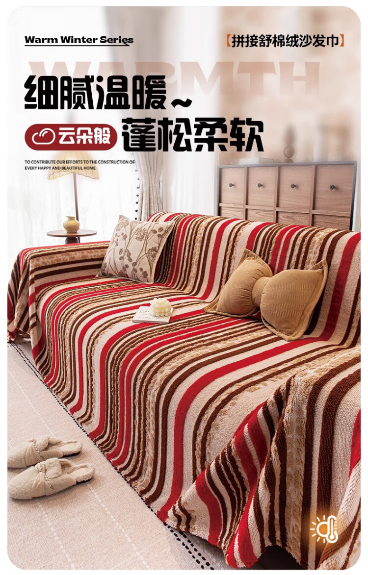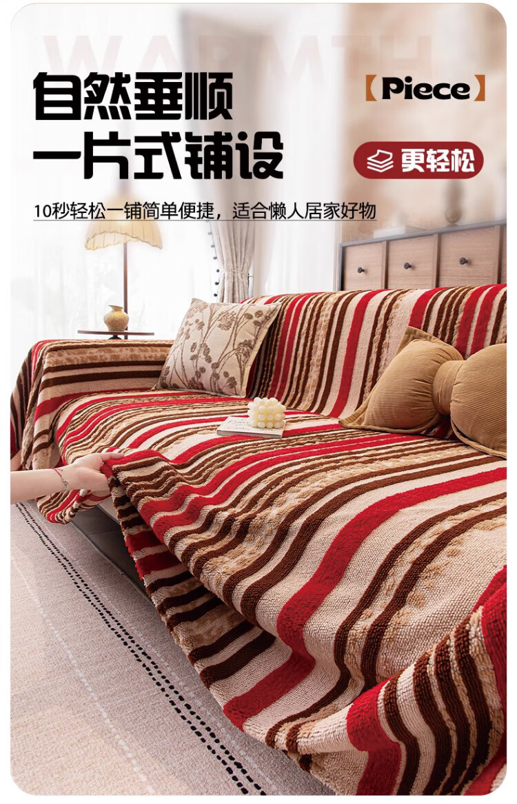 金拾美月高级感复古毛绒沙发盖布巾2026新款冬季一整张全盖万能套防猫抓 缪斯-红色 180cm*130cm (适用于单人位/脚踏)