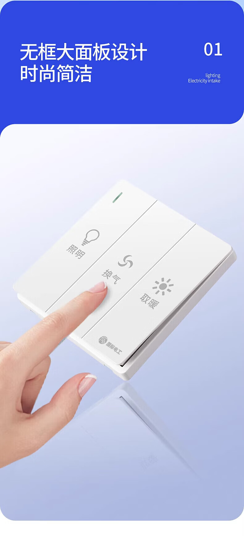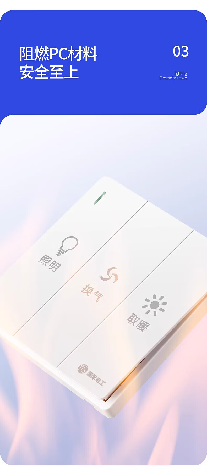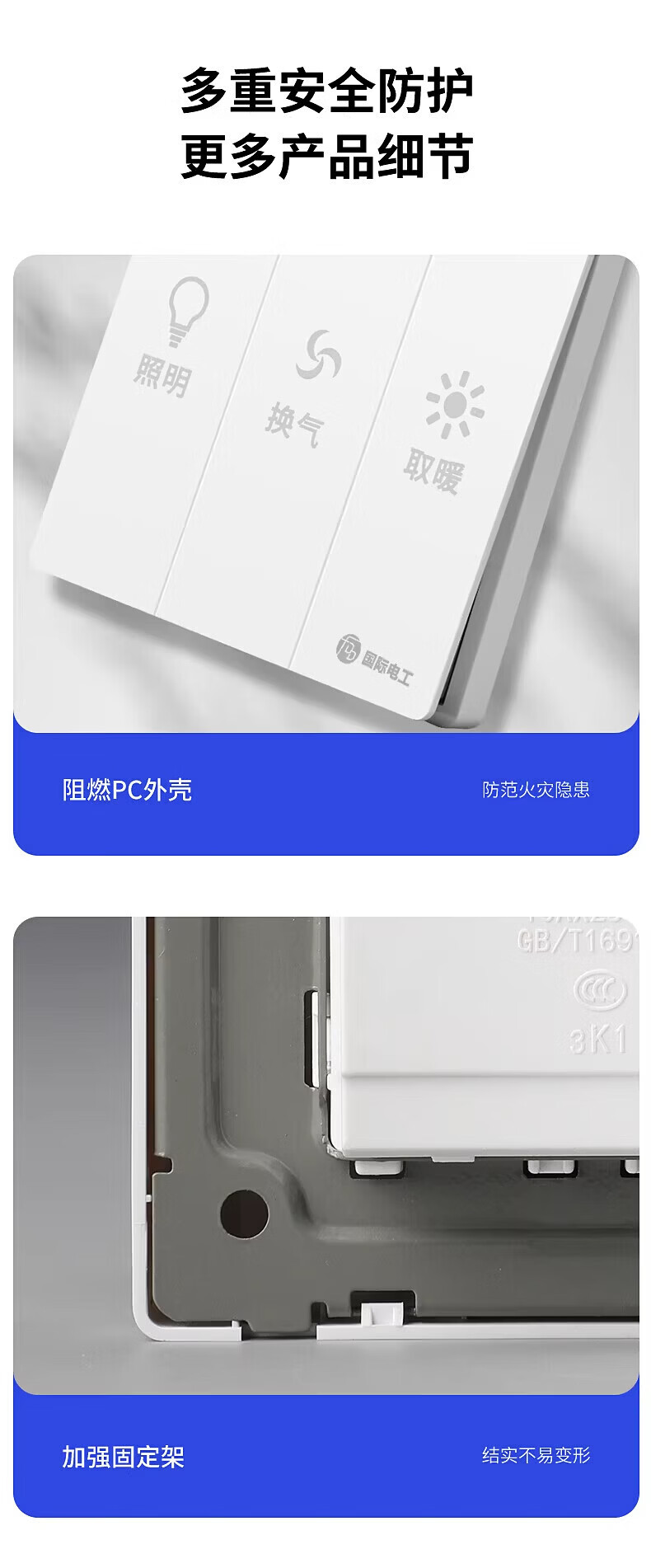 国际电工86型暗装大板三开浴霸开关浴室卫生间照明一体通用开关面板 三开浴霸开关-灰色