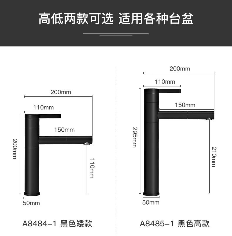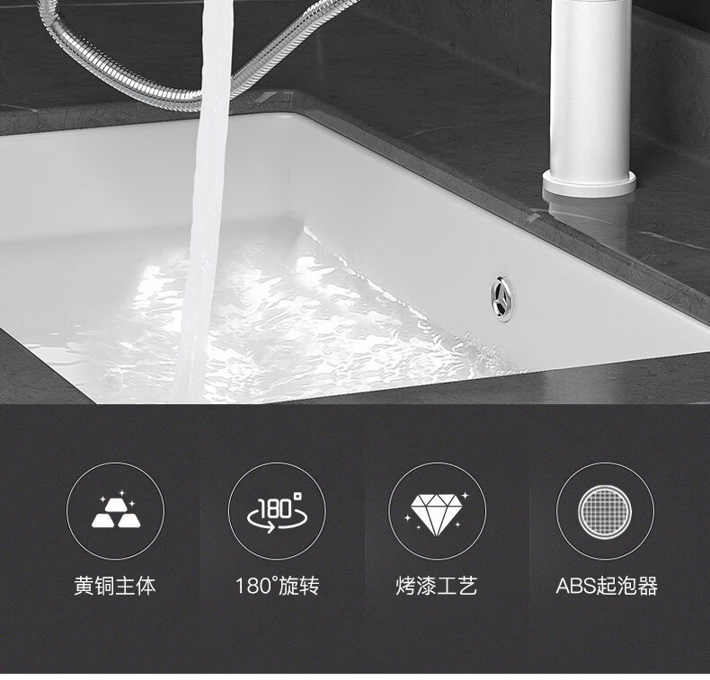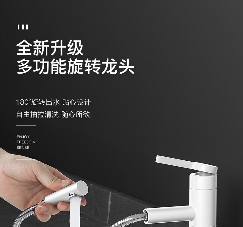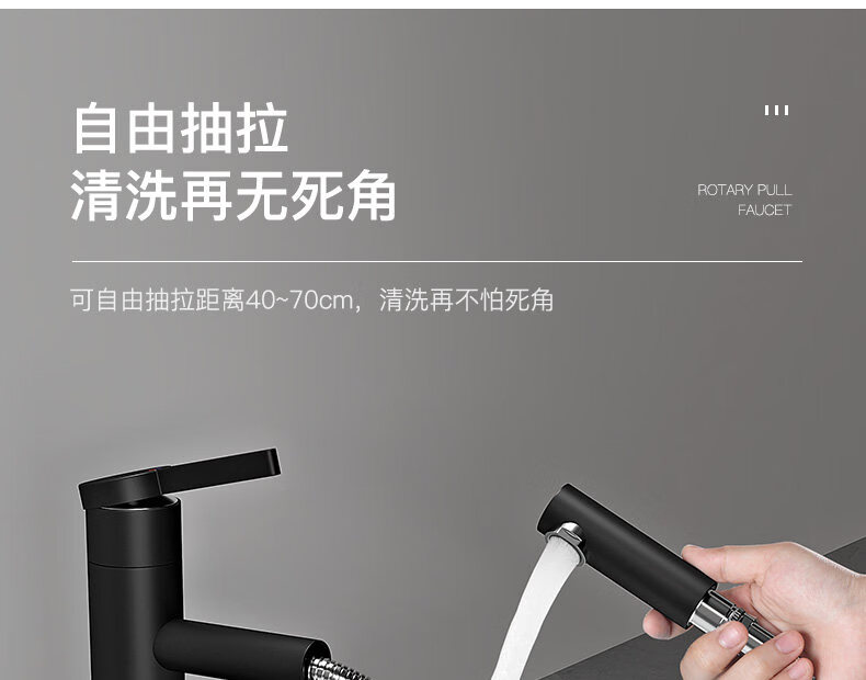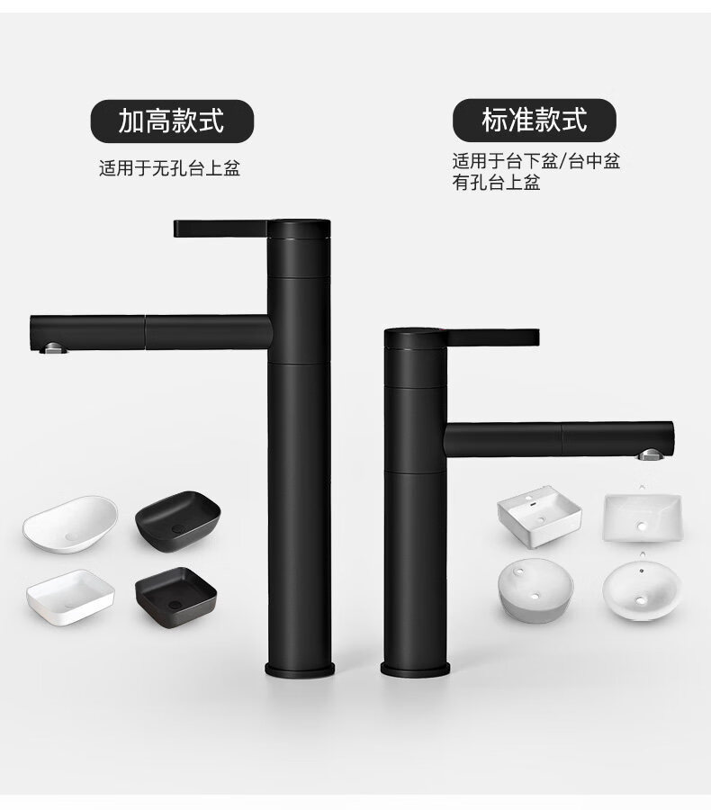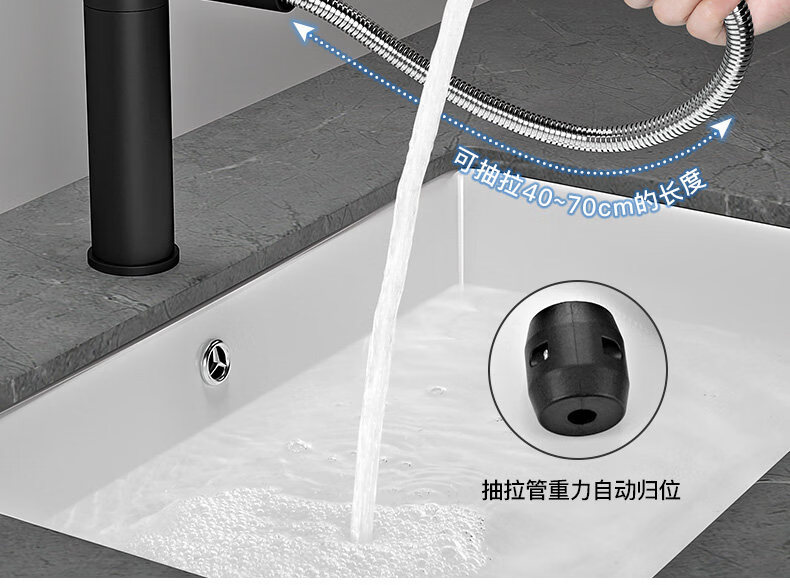 质享摩恩北欧轻奢抽拉式冷热水龙头家用卫生间洗脸盆台上台下盆龙头8482 8484-1黑色+冷热管