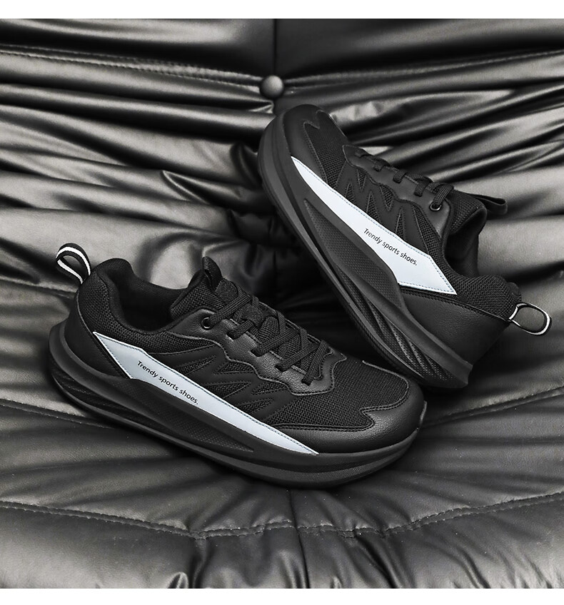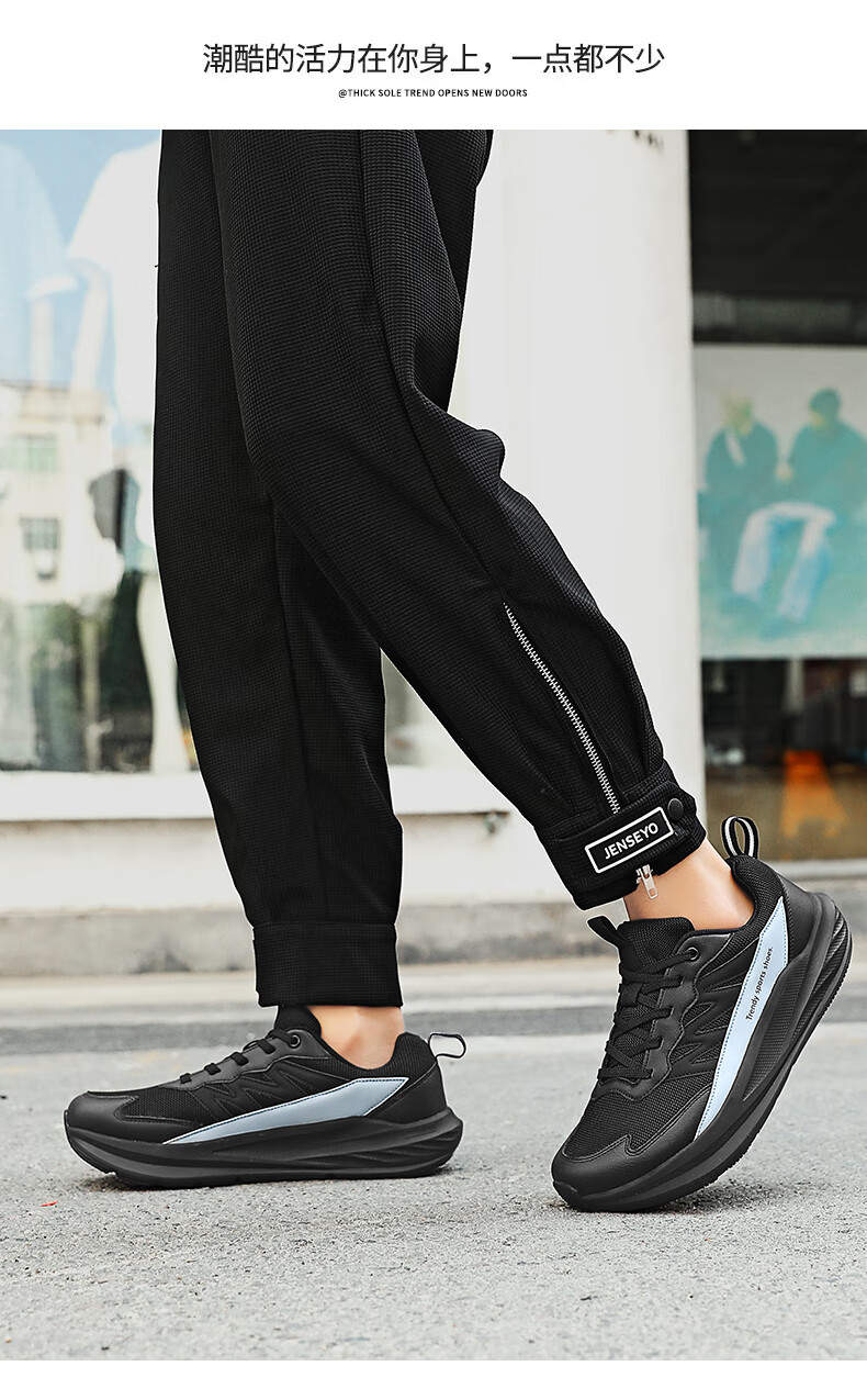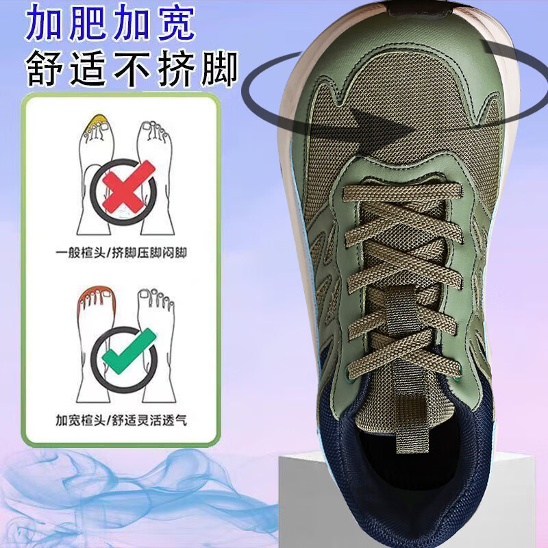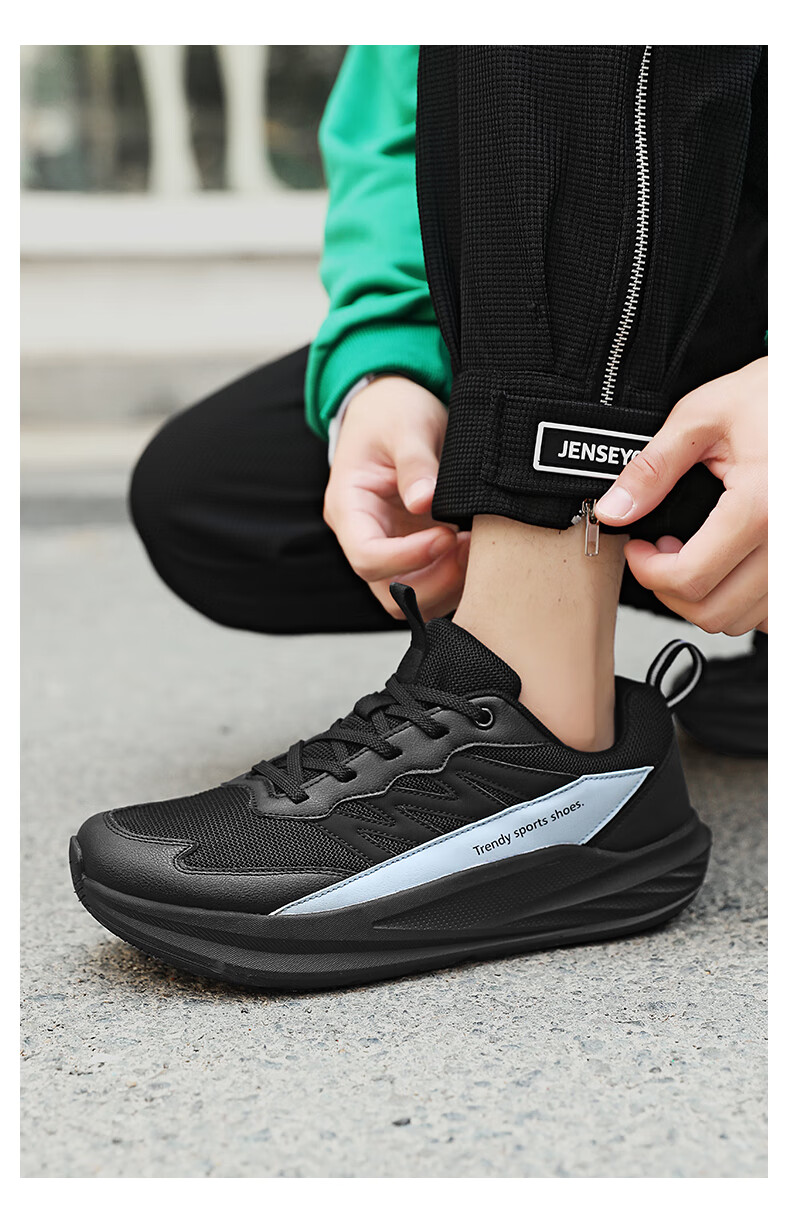 稻草人(MEXICAN)宽脚跑步鞋男特大码加宽男鞋大头鞋户外厚底学生缓震网面运动防臭 黑色【加绒】 偏小,建议大一码 36